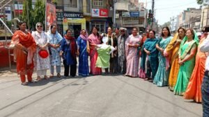 आंगनबाड़ी साड़ी घोटाले के विरोध में महिला कांग्रेस का प्रदर्शन, मंत्री का पुतला दहन