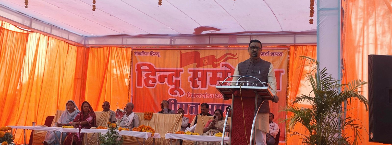 सीपत,,,,,सीपत के धान मंडी मंच में विशाल हिंदू सम्मेलन का आयोजन किया गया l वक्ताओं ने बताया कि हिंदू सम्मेलन का प्रमुख उद्वेश्य हिंदू समाज को संगठित करना, सामाजिक समरसता,और राष्ट्र हित के विषयों पर जागरूकता,मनखे मनखे एक समान था l सर्वप्रथम अतिथियों के द्वारा भारत माता की प्रतिमा पर फूल माल्यार्पण व दीप प्रज्वलित कर किया l कार्यक्रम को संबोधित करते हुए मुख्य अतिथि निखिल आश्रम बहतराई राष्ट्रीय संत समिति के अध्यक्ष वासुदास जी महराज ने कहा कि हिंदुत्व की अपने सनातन धर्म की रक्षा हम सब भारतवासियों को दायित्व बनता है l हमें इस बात ध्यान रखना होगा कि आने वाला समय भविष्य भारत का सुनहरा और उज्जवल होगा l जो युवा पीढ़ियों के हाथों में होगी l जिसके लिए हम सब एक रहे और अपने धर्म देश व समाज की रक्षा करने के लिए आगे रहे l गौ माता की रक्षा करना सभी का कर्तव्य बनता है l मुख्य वक्ता के रूप में चंद्रशेखर देवांगन राष्ट्रीय स्वयंसेवक संघ ने कहा कि एक साथ एक मंच पर और हिंदू समाज के संगठन के नाते हम यहां पर उपस्थित है l इस प्रकार का अपने छत्तीसगढ़ में भी हिंदू समाज के संगठन भी काम कर रहा है l जिसका 100 वर्ष पूरा हो गया वह है राष्ट्रीय स्वयंसेवक संघ है l इस संगठन ने हिंदू समाज जोड़ने काम करता है l हिंदू समाज एक साथ एक मंच पर आकर कोई काम करें कोई विचार करें और उसका केवल एक ही उद्देश्य होना चाहिए कि भारत माता की जय l भारत शिक्षा में विश्व गुरु था l हमने अपनी संस्कृति और सभ्यता को बचा कर रखा है l जब जब धर्म की हानि हुई उसको संभालने के संत समाज आगे आए l स्वतंत्रता के बाद देश की आज क्या स्थिति है l हमारा देश कहा से चला था और आज कहा पर खड़ा है l आपको सबको पता है l आज भारत ज्ञान और विज्ञान में सबसे आगे है l कट्टरवादी स्लामिक समस्या से हमें लड़नी है l समाज की शिक्षित वर्ग किस दिशा में जा रहा उसे देखना होगा l दूसरी समस्या विस्तारवादी चर्च लोगो के भ्रम के कारण इनकी संख्या समाज में कितनी बढ़ती जा रही है l तीसरी समस्याएं वामपंथी समस्या है l विश्व की बाजारवादी शक्तियों ने आज हमारे बीच समस्या पैदा की है l इन शक्तियों को लड़ने के लिए हमें पंच परिवर्तन करना जरूरी है जिसमें सामाजिक समरसता, कुटुम्ब प्रबोधन,पर्यावरण की समस्या, नागरिक शिष्टाचार, स्व का बोध होना चाहिए l भारत के लिए जो जीएगा मरेगा तब भारतमाता की जय होगा l