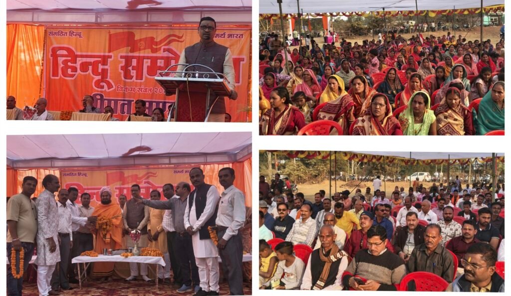सीपत,,,,,सीपत के धान मंडी मंच में विशाल हिंदू सम्मेलन का आयोजन किया गया l वक्ताओं ने बताया कि हिंदू सम्मेलन का प्रमुख उद्वेश्य हिंदू समाज को संगठित करना, सामाजिक समरसता,और राष्ट्र हित के विषयों पर जागरूकता,मनखे मनखे एक समान था l सर्वप्रथम अतिथियों के द्वारा भारत माता की प्रतिमा पर फूल माल्यार्पण व दीप प्रज्वलित कर किया l कार्यक्रम को संबोधित करते हुए मुख्य अतिथि निखिल आश्रम बहतराई राष्ट्रीय संत समिति के अध्यक्ष वासुदास जी महराज ने कहा कि हिंदुत्व की अपने सनातन धर्म की रक्षा हम सब भारतवासियों को दायित्व बनता है l हमें इस बात ध्यान रखना होगा कि आने वाला समय भविष्य भारत का सुनहरा और उज्जवल होगा l जो युवा पीढ़ियों के हाथों में होगी l जिसके लिए हम सब एक रहे और अपने धर्म देश व समाज की रक्षा करने के लिए आगे रहे l गौ माता की रक्षा करना सभी का कर्तव्य बनता है l मुख्य वक्ता के रूप में चंद्रशेखर देवांगन राष्ट्रीय स्वयंसेवक संघ ने कहा कि एक साथ एक मंच पर और हिंदू समाज के संगठन के नाते हम यहां पर उपस्थित है l इस प्रकार का अपने छत्तीसगढ़ में भी हिंदू समाज के संगठन भी काम कर रहा है l जिसका 100 वर्ष पूरा हो गया वह है राष्ट्रीय स्वयंसेवक संघ है l इस संगठन ने हिंदू समाज जोड़ने काम करता है l हिंदू समाज एक साथ एक मंच पर आकर कोई काम करें कोई विचार करें और उसका केवल एक ही उद्देश्य होना चाहिए कि भारत माता की जय l भारत शिक्षा में विश्व गुरु था l हमने अपनी संस्कृति और सभ्यता को बचा कर रखा है l जब जब धर्म की हानि हुई उसको संभालने के संत समाज आगे आए l स्वतंत्रता के बाद देश की आज क्या स्थिति है l हमारा देश कहा से चला था और आज कहा पर खड़ा है l आपको सबको पता है l आज भारत ज्ञान और विज्ञान में सबसे आगे है l कट्टरवादी स्लामिक समस्या से हमें लड़नी है l समाज की शिक्षित वर्ग किस दिशा में जा रहा उसे देखना होगा l दूसरी समस्या विस्तारवादी चर्च लोगो के भ्रम के कारण इनकी संख्या समाज में कितनी बढ़ती जा रही है l तीसरी समस्याएं वामपंथी समस्या है l विश्व की बाजारवादी शक्तियों ने आज हमारे बीच समस्या पैदा की है l इन शक्तियों को लड़ने के लिए हमें पंच परिवर्तन करना जरूरी है जिसमें सामाजिक समरसता, कुटुम्ब प्रबोधन,पर्यावरण की समस्या, नागरिक शिष्टाचार, स्व का बोध होना चाहिए l भारत के लिए जो जीएगा मरेगा तब भारतमाता की जय होगा l