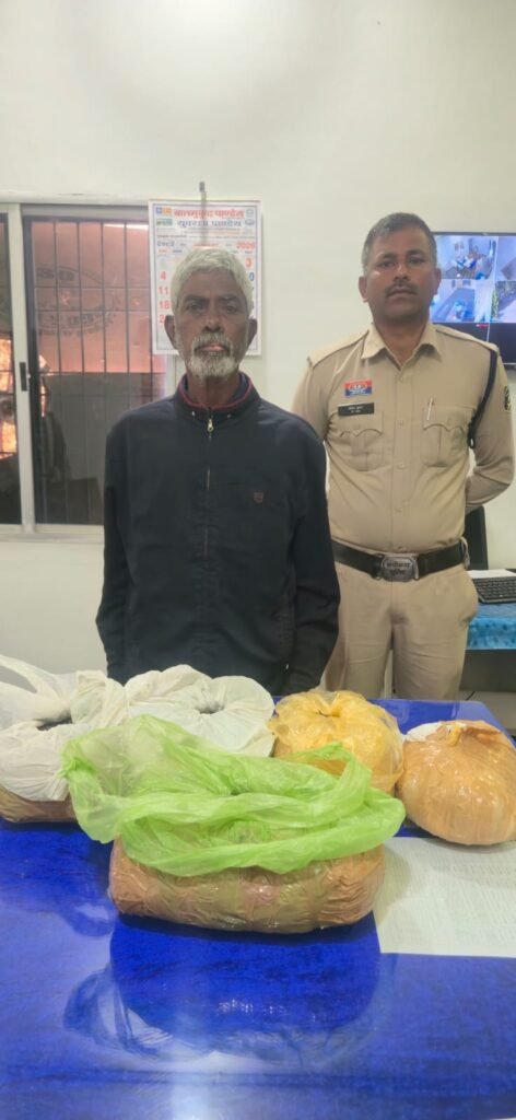 रतनपुर :-… प्रहार अभियान के तहत अवैध नशे पर अंकुश लगाने हेतु वरिष्ठ पुलिस अधीक्षक रजनेश सिंह के द्वारा नशे के विरूद्ध प्रभावी कार्यवाही हेतु दिशानिर्देश दिये गये थे, उक्त संबंध में नशा विरूद्ध चेतना अभियान चलाये जा रहा है तथा मादक पदार्थ की तस्करी रोकने के साथ साथ अवैध रूप से खरीदी विक्री करने वाले लोगो के संबंध में कड़ी कार्यवाही के निर्देश दिये गये थे। नशे के विरूद्ध अभियान को प्रभावी बनाने हेतु मुखबिर तैनात किये है इसी तारतम्य में दिनांक 15.01.2026 बेलगहना चौकी पुलिस को मुखबिर से सूचना मिली कि फारेस्ट कालोनी के दादा मिया नामक व्यक्ति के द्वारा बिक्री हेतु अवैध मादक पदार्थ गांजा अपने घर में रखा है उक्त सूचना पर वरिष्ठ अधिकारियों को अवगत कराने उपरान्त अतिरिक्त पुलिस अधीक्षक ग्रामीण श्रीमती मधुलिका सिंह, अनुविभागीय पुलिस अधिकारी श्रीमती नुपुर उपाध्याय के दिशा निर्देशन पर बेलगहना पुलिस के द्वारा टीम गठित कर फारेस्ट कालोनी बेलगहना में मुखबिर के निशानदेही पर नारकोटिक्स एक्ट के तहत प्रावधानों के अन्तर्गत विधिवत रेड कार्यवाही कर फारेस्ट कालोनी बेलगहना में दादा मिंया पिता मौली बक्स उम्र 65 साल निवासी फारेस्ट कालोनी बेलगहना चौकी बेलगहना थाना कोटा जिला बिलासपुर के कब्जे से दो नग अलग अलग कपड़े के थैला में 05 पैकेट में भरे मादक पदार्थ कुल वजनी 05 किलोग्राम कीमती 250000 रू एवं मादक पदार्थ गांजा बिक्री रकम 1300 रू कुल मशरूका 251300 रू को समक्ष गवाहन विधिवत जप्त कर कब्जे पुलिस लेकर विधिवत कार्यवाही की गई है। प्रकरण में पुलिस अधीक्षक महोदय द्वारा *एण्ड टू एण्ड विवेचना के निर्देश पर* गिरप्तार आरोपी से पूछताछ करने पर जानकारी मिली की ग्राम बेलगहना के गुण्डा बदमाश लक्ष्मण यादव से 05 किलोग्राम मादक पदार्थ गांजा को 20 हजार रु देकर खरीदना शेष रकम मादक पदार्थ गांजा बिक्री करने के बाद देना बतलाया है। लक्ष्मण यादव की पता तलाश की जा रही है। उक्त कार्यवाही में उप निरीक्षक हेमंत सिंह, सउनि भरतलाल राठौर, प्रआर नरेन्द्र कुमार पात्रे, आरक्षक अंकित जायसवाल, धीरज जायसवाल, ईश्वर नेताम का विशेष भूमिका रही।नाम आरोपी दादा मिंया पिता मौली बक्स उम्र 65 साल निवासी फारेस्ट कालोनी बेलगहना चौकी बेलगहना थाना कोटा जिला बिलासपुर