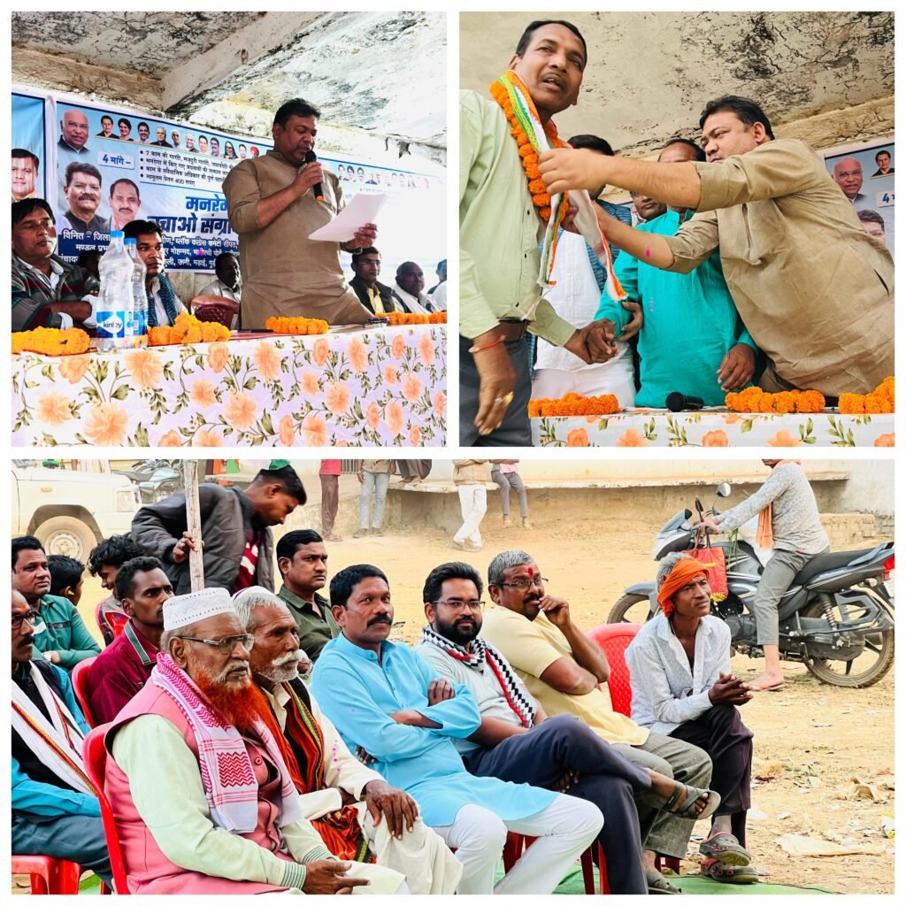 केश शिल्प बोर्ड के उपाध्यक्ष चित्रकांत श्रीवास ने कहा कि केंद्र सरकार की नीतियां गरीब विरोधी हैं। मनरेगा पर कुठाराघात कर मजदूरों की रोजी-रोटी छीनी जा रही है। कांग्रेस इस लड़ाई को निर्णायक मोड़ तक ले जाएगी। खांड़ा के नवनियुक्त मंडल अध्यक्ष प्रमोद जायसवाल ने कहा कि खांड़ा की धरती से मजदूरों के हक की आवाज़ पूरे जिले में गूंजेगी। कांग्रेस हर श्रमिक के साथ खड़ी है। जिले यूथ कांग्रेस के कार्यकारी अध्यक्ष सुनील पटेल ने कहा कि युवा कांग्रेस मनरेगा बचाव आंदोलन में अग्रिम पंक्ति में रहकर संघर्ष करेगी। यह लड़ाई रोजगार, सम्मान और संविधान की रक्षा की है। कार्यक्रम में अशोक राजवाल, राजू सूर्यवंशी, भागीरथी पोरते, वृंदा सूर्यवंशी, मुकेश यादव, रामसनेही कमल, दीपक साहू, जितेंद्र गोस्वामी, खांड़ा सरपंच कामता कैवर्त, नारायण दास, राजेंद्र सूर्यवंशी, टीकाराम सहित बड़ी संख्या में कांग्रेसी कार्यकर्ता, सेवादल, महिला कांग्रेस, किसान कांग्रेस, एनएसयूआई एवं मनरेगा श्रमिक उपस्थित रहे।