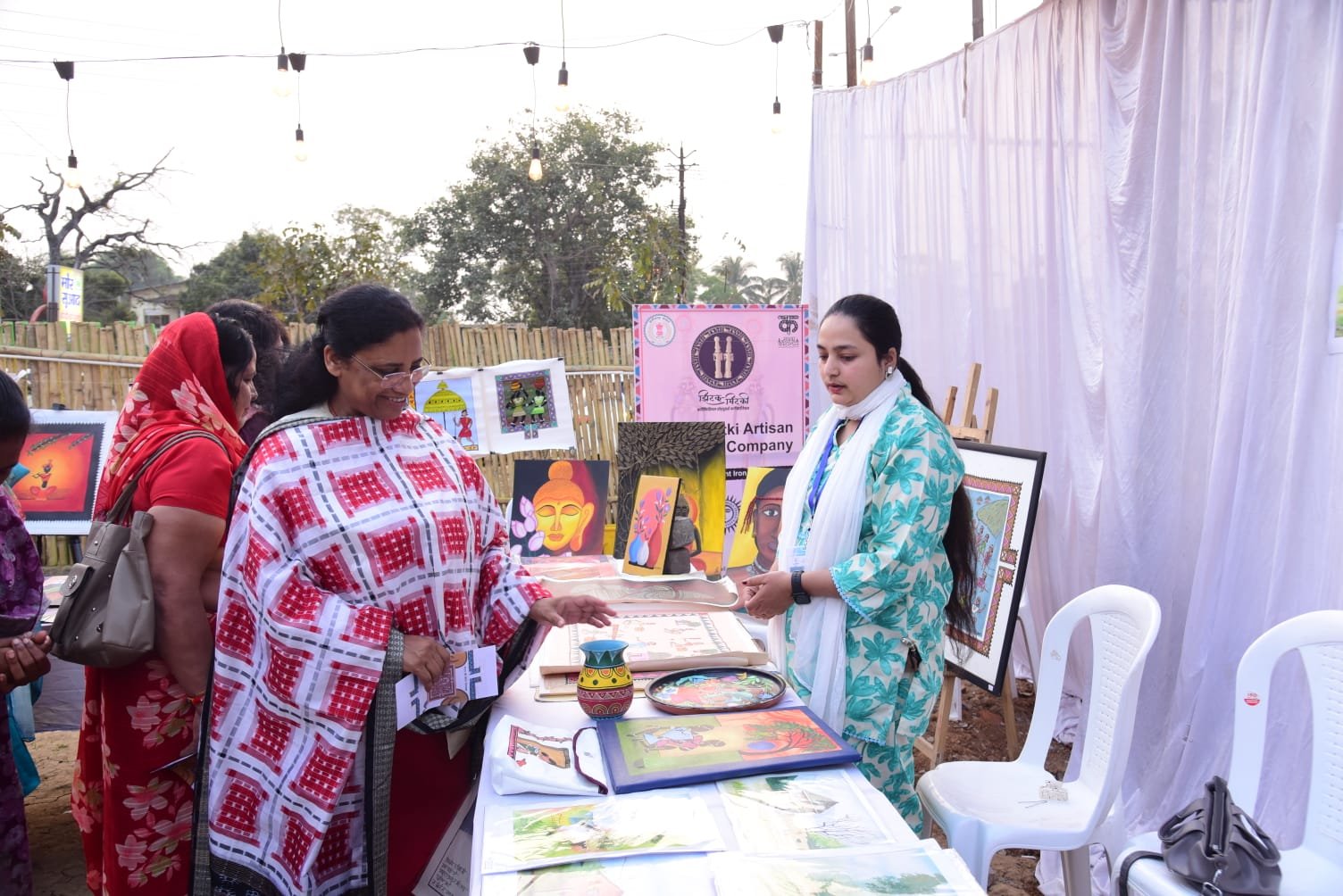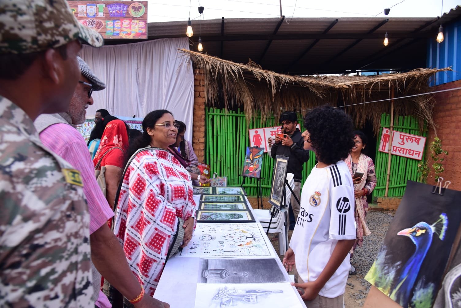 कोंडागांव :— जिला प्रशासन कोंडागांव की अभिनव पहल के तहत मोर सुआद दीदी की रसोई परिसर में शनिवार को चित्रकला प्रदर्शनी एवं विक्रय का शुभारंभ बस्तर विकास प्राधिकरण की उपाध्यक्ष एवं कोंडागांव विधायक लता उसेंडी द्वारा किया गया। इस अवसर पर जिले भर से आए लोक कलाकारों एवं मॉडर्न आर्ट के कलाकारों ने अपनी रचनाओं की प्रदर्शनी लगाई, जो दर्शकों के लिए विशेष आकर्षण का केंद्र रही।
