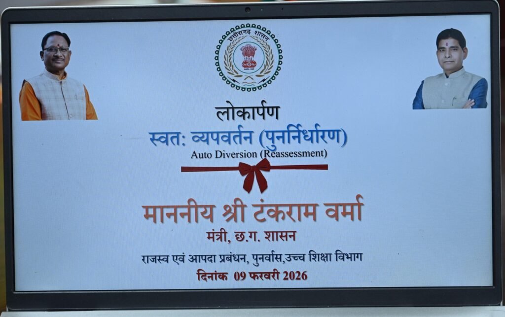 रायपुर ;— मुख्यमंत्री  विष्णुदेव साय के नेतृत्व में छत्तीसगढ़ में डिजिटल गवर्नेंस को और अधिक सशक्त बनाते हुए आज नागरिक सुविधा के क्षेत्र में दो महत्वपूर्ण और अभिनव पहल का शुभारंभ किया गया। राजस्व मंत्री श्री टंकराम वर्मा ने अपने निवास कार्यालय में भुइयां व्हाट्सऐप चैटबॉट सेवा तथा ऑटो-डाइवर्ज़न (पुनर्निर्धारण) सुविधा का औपचारिक राज्यव्यापी शुभारंभ किया। ये दोनों डिजिटल पहल राज्य में ई-गवर्नेंस, पारदर्शिता और नागरिक-केंद्रित प्रशासन की दिशा में एक बड़ा कदम हैं। इन सेवाओं के माध्यम से नागरिकों को अब राजस्व संबंधी सेवाओं के लिए कार्यालयों के चक्कर नहीं लगाने पड़ेंगे और कार्यवाही पूरी तरह सरल, तेज़ और पारदर्शी होगी।