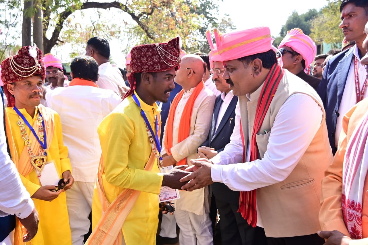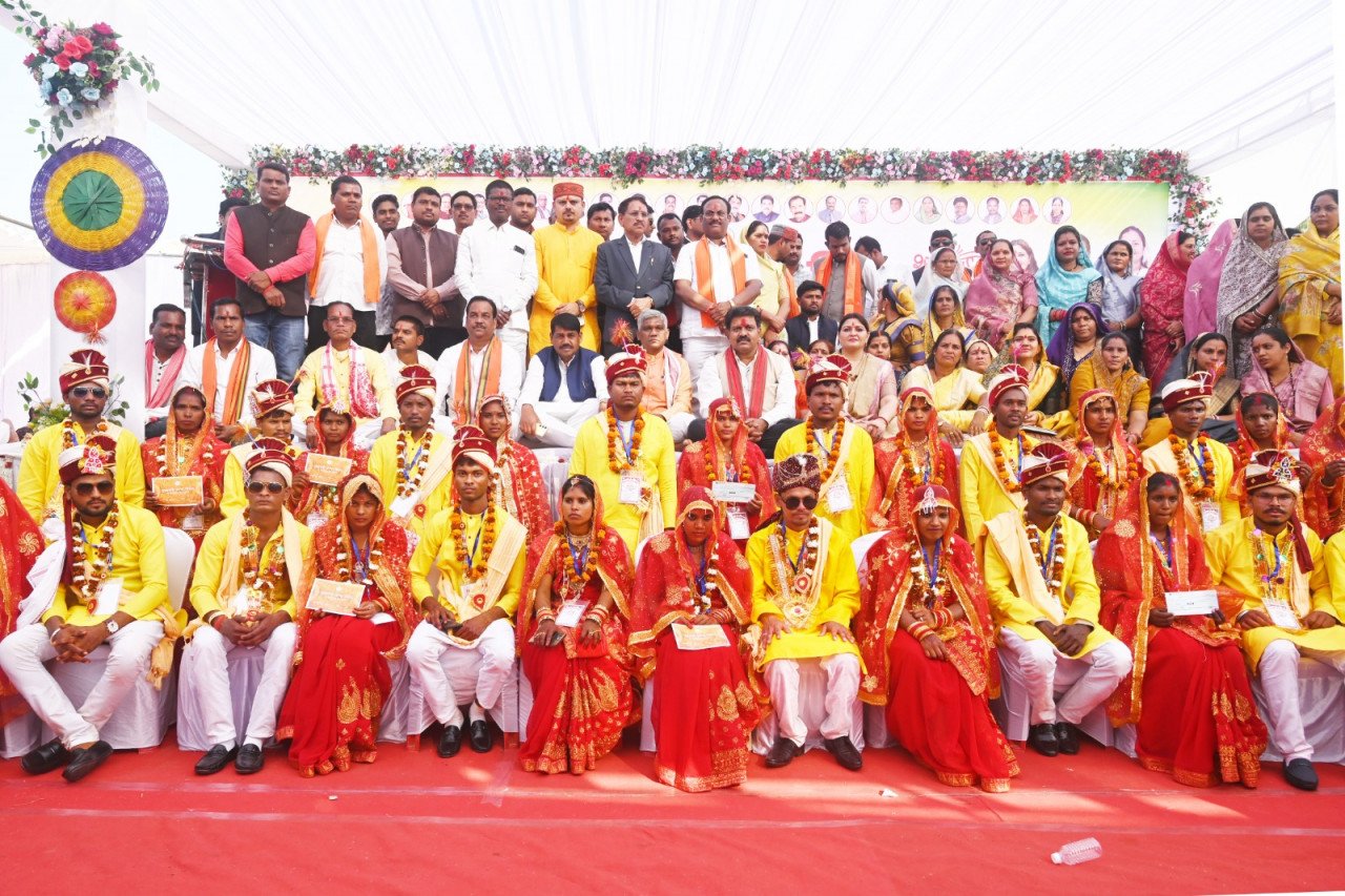 सरदार पटेल मैदान में आयोजित इस समारोह में उपमुख्यमंत्री विजय शर्मा शामिल वधुओं के परिजन बनकर शामिल हुए। इस अवसर में उन्होंने बारात का स्वागत करने के साथ सभी को परघाते हुए समधी की तरह सभी का अभिवादन किया। वरों एवं उनके परिजनों का फूल माला के साथ स्वागत करते हुए सभी का गले लगाकर अभिनंदन किया। उन्होंने परिणय सूत्र में बंधकर नए जीवन की शुरुआत करने वाले सभी नवदंपतियों को बधाई एवं शुभकामनाएं दीं। कार्यक्रम में पंडित द्वारा वर-वधुओं को सात वचनों का संकल्प दिलाया गया, जिसके साथ ही विवाह की रस्में संपन्न हुईं। उपमुख्यमंत्री शर्मा ने मंच पर पहुंचकर सभी नवदंपतियों को आशीर्वाद प्रदान किया और शासन की ओर से प्रत्येक जोड़े को 35-35 हजार रुपये की सहायता राशि का चेक और सामग्री भेंट किया।
