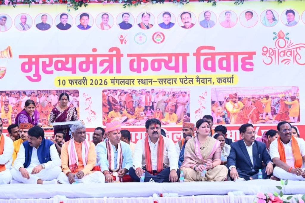रायपुर:—आज मुख्यमंत्री कन्या विवाह योजना के अंतर्गत सामाजिक रिती-रिवाजों और अभुतपूर्व उत्साह के साथ कबीरधाम जिले के 272 जोड़े एक साथ सात फेरे लेकर अटूट बंधन में बंध गए। इस पावन अवसर पर मुख्यमंत्री विष्णुदेव साय वर्चुअल माध्यम से जुड़कर नवविवाहित जोड़ों को आशीर्वाद प्रदान किया।