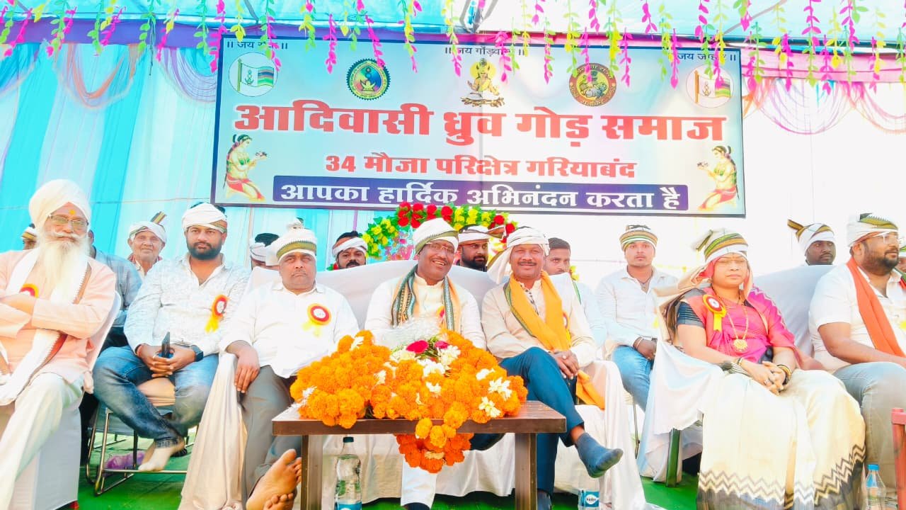 *गरियाबंद*:- गुरुवार को राजिम विधायक रोहित साहू ने ग्राम आमदी में आयोजित आदिवासी ध्रुव गोड़ समाज 34 मौजा परिक्षेत्र गरियाबंद के वार्षिक सम्मेलन में बतौर मुख्य अतिथि शामिल हुए। इस अवसर पर आदिवासी समाज ने उनका पारंपरिक तरीके से नृत्य और बाजे गाजे के साथ भव्य स्वागत किया। कार्यक्रम की अध्यक्षता ओ परिक्षेत्र अध्यक्ष अशोक मरकाम ने की।