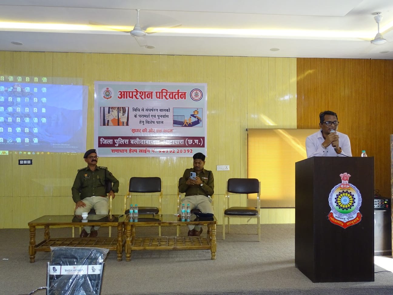 आपरेशन परिवर्तन” कार्यक्रम में किशोरों के पुनर्वास, उनकी सोच में सकारात्मक बदलाव और उन्हें मुख्यधारा में वापस लौटने के लिए प्रेरित किया गया। कार्यक्रम में हेमसागर सिदार *अतिरिक्त पुलिस अधीक्षक भाटापारा द्वारा* कहा गया कि कहा कि इस कार्यक्रम का मुख्य उद्धेश्य विधि से संघर्षरत बालको एवं किशोरों की सोच में सकारात्मक बदलाव और उन्हें मुख्य धारा में वापस लाने के लिए एक सुधारात्मक पहल है, जिसमें शिक्षा, कौशल विकास, संस्कार और स्वास्थ्य पर केंद्रित है। क्लिनिकल साइकोलॉजिस्ट (स्वास्थ्य) मोनिंदर घृतलहरे द्वारा कार्यक्रम के दौरान उपस्थित किशोरों के सांथ विभिन्न एक्टिविटी के माध्यम से उन्हें समाज की मुख्य धारा में लौटने, पढ़ाई में ध्यान देने, गृह कार्यों में अपने परिजनों का भरपूर साथ देने, नशा से सदा दूर रहने आदि हेतु प्रेरित किया गया।