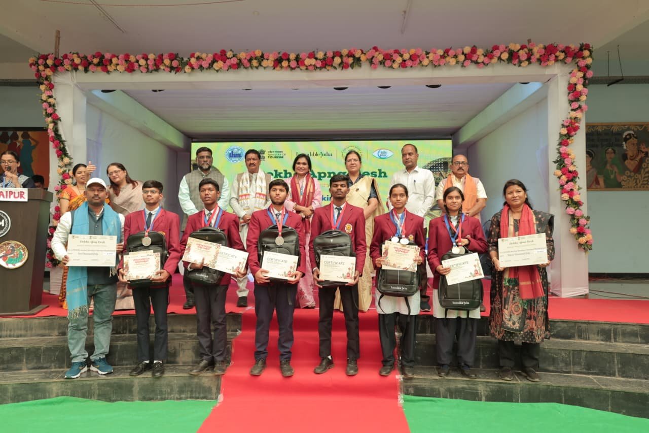 रायपुर:—भारत सरकार के पर्यटन मंत्रालय के क्षेत्रीय कार्यालय इंडिया टूरिज्म, मुंबई द्वारा स्टेट इंस्टीट्यूट ऑफ होटल मैनेजमेंट, रायपुर (एसआईएचएम) के सहयोग से ‘देखो अपना देश’ ब्रोशर निर्माण प्रतियोगिता, पुरस्कार वितरण समारोह एवं पर्यटन शिक्षा प्रदर्शनी का भव्य आयोजन किया गया। कार्यक्रम का उद्देश्य युवाओं में भारत के विविध पर्यटन स्थलों के प्रति जागरूकता बढ़ाना तथा पर्यटन एवं आतिथ्य के क्षेत्र में उपलब्ध करियर अवसरों से उन्हें परिचित कराना रहा।