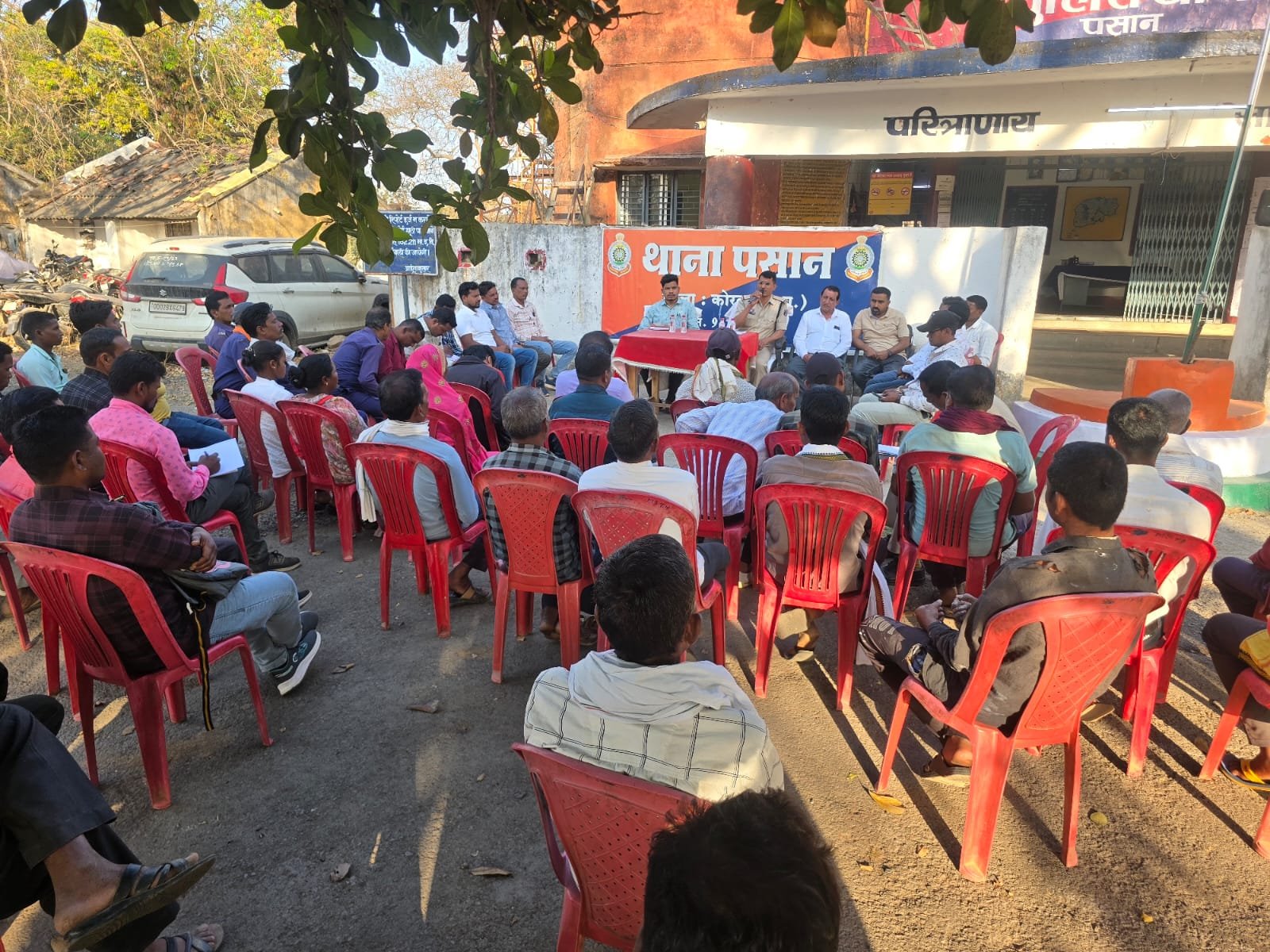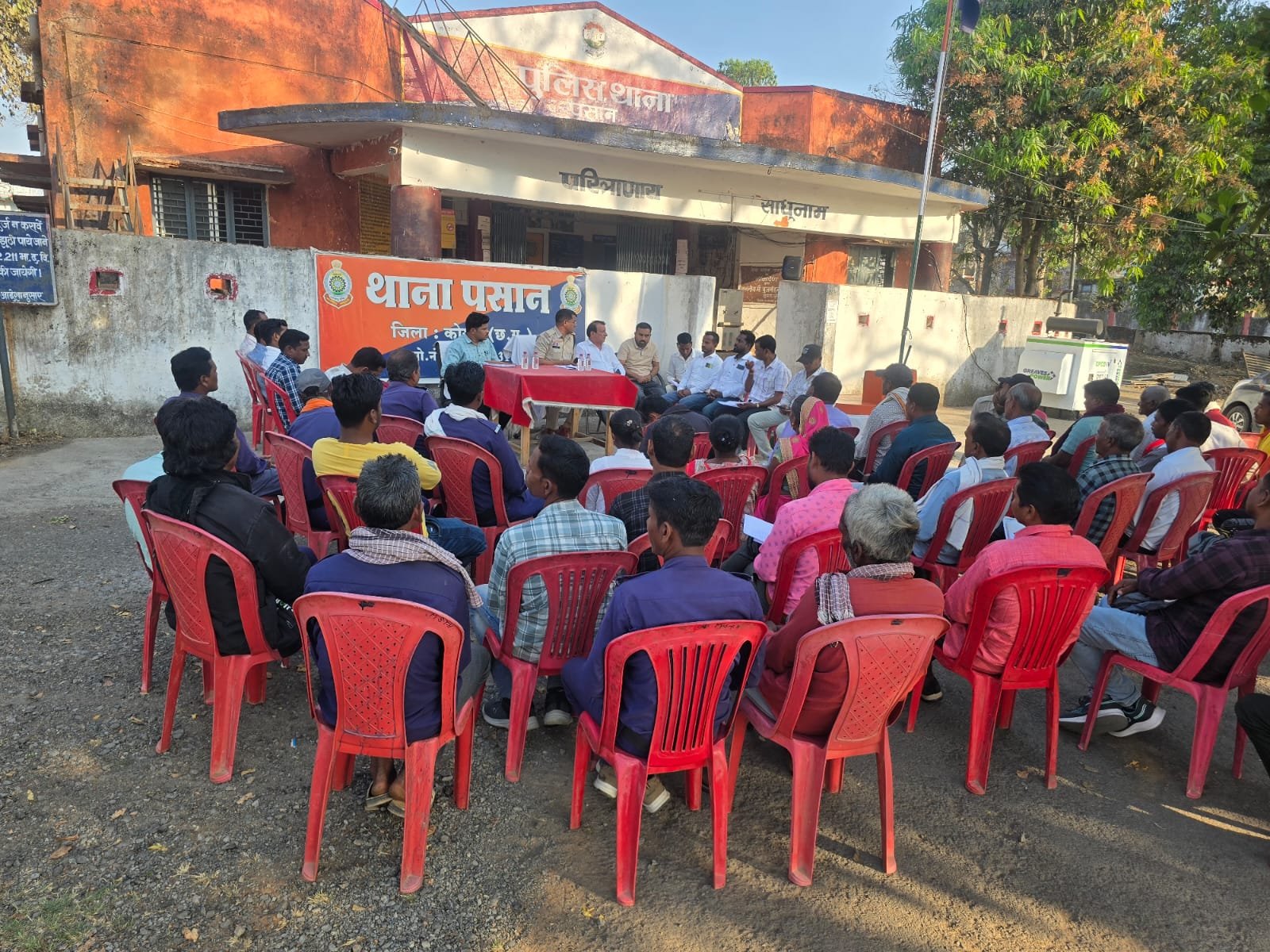 उक्त बैठक का नेतृत्व थाना प्रभारी पसान चंद्रपाल खांडे द्वारा किया गया। बैठक में तहसीलदार की गरिमामयी उपस्थिति रही। साथ ही क्षेत्र के जनप्रतिनिधि, पंच-सरपंच, ग्राम कोटवार, गणमान्य नागरिक एवं विभिन्न ग्रामों के ग्रामीणजन बड़ी संख्या में उपस्थित हुए। लगभग 150 से अधिक नागरिकों की उपस्थिति में बैठक संपन्न हुई।