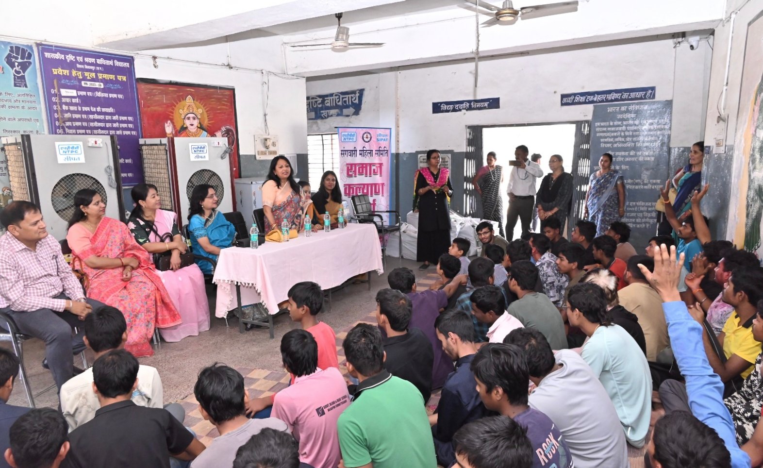सीपत,,,,,,एनटीपीसी सीपत संगवारी महिला समिति द्वारा दिनांक 03 मार्च 2026 को समाज कल्याण कार्य के अंतर्गत दृष्टि एवं श्रवण बाधित विद्यालय तिफरा बिलासपुर में शुद्ध पेयजल एवं गर्मी से राहत दिलाने 01 नग वॉटर कूलर आरो प्युरिफ़ाइर सहित व 02 नग डेसर्ट कूलर भेंट की गई। अध्यक्षा संगवारी महिला समिती श्रीमती शिखा मंडल के नेतृत्व में समिति की सदस्याओं ने औपचारिक भेंट कर दृष्टि एवं श्रवण बाधित विद्यालय तिफरा बिलासपुर में अध्ययन रत 159 बच्चों के उपयोग के लिए ठंडे एवं शुद्ध पेयजल के लिए 01 सेट वॉटर कूलर आरो प्युरिफ़ाइर सहित एवं गर्मी से राहत दिलाने 02 नग डेसर्ट कूलर विद्यालय को प्रदान की गई। साथ ही छात्रावास में रहने वाले 120 बच्चों को टी- शर्ट एवं लोवर के साथ बेडशीट भी प्रदान किए गए। ज्ञात हो संगवारी महिला समिति द्वारा समीपवर्ती परियोजना प्रभावित गाँवों में महिलाओं एवं बालिकाओं के सर्वांगीण विकास के लिए विभिन्न प्रकार के कार्य किए जाते हैं इसके साथ ही आवश्यकता अनुसार जरूरतमंद संस्थाओं को भी सहयोग प्रदान किए जाते हैं । इसी कड़ी में समिति द्वारा बिलासपुर स्थित दृष्टि एवं श्रवण बाधित विद्यालय तिफरा में यह सहयोग प्रदान किया गया। अध्यक्षा संगवारी महिला समिति श्रीमती शिखा मंडल ने बच्चों से बातचीत कर उनके दिनचर्या एवं लक्ष्यों के बारे में जानकारी ली। साथ ही उन्होनें कहा कि समिति द्वारा आगे भी इस तरह के सहयोग आवश्यकता अनुसार प्रदान किया जाता रहेगा। बच्चों से बातचीत के दौरान बच्चों ने भी कहा कि हम सभी को संगवारी महिला समिति के द्वारा किए गए कार्यों से काफी खुशी हुई है। बच्चों ने इस दौरान अपनी गायन प्रतिभा से सभी को मंत्रमुग्ध कर दिया।