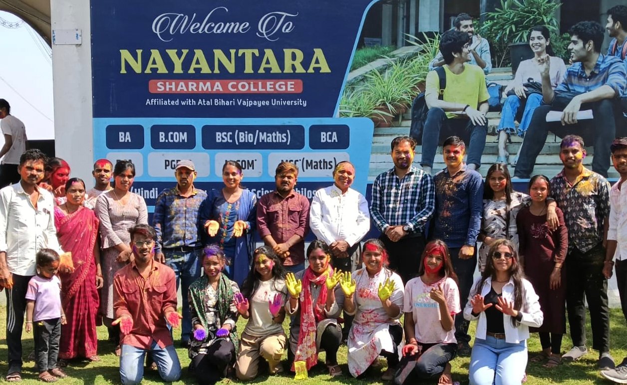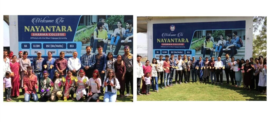 पंधी : स्थानीय नयनतारा शर्मा कॉलेज में आज ‘होली महोत्सव’ का आयोजन बेहद उत्साह और उमंग के साथ किया गया। रंगों के इस पावन पर्व पर कॉलेज परिसर आत्मीयता, आपसी सद्भावना और प्रेम के रंगों में सराबोर नजर आया।