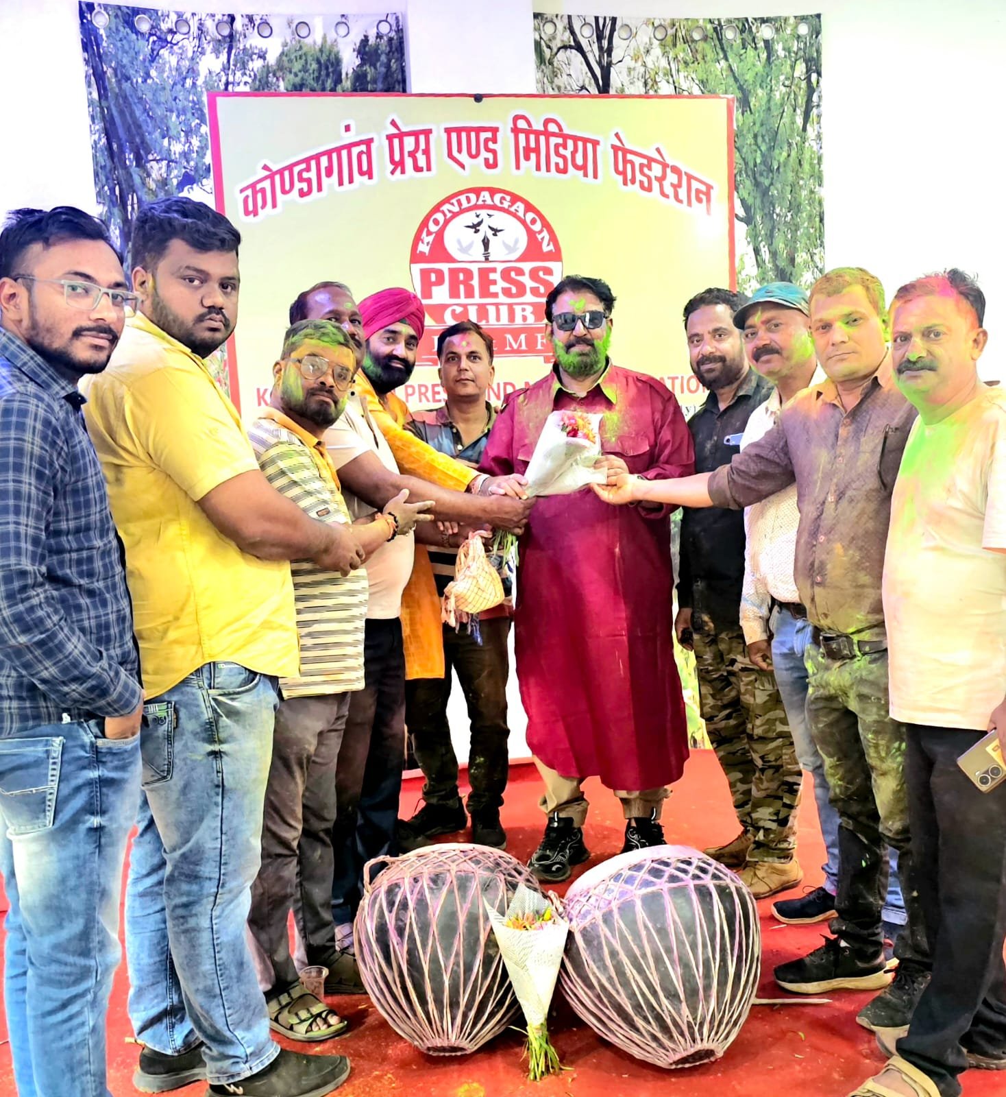कोण्डागांव :— कोण्डागांव प्रेस एंड मीडिया फेडरेशन सह प्रेस क्लब में रविवार को होली मिलन समारोह उत्साह और सौहार्दपूर्ण माहौल में मनाया गया। कार्यक्रम में जिले के पत्रकारों के साथ जिला प्रशासन के अधिकारी, जनप्रतिनिधि और शहर के गणमान्य नागरिक शामिल हुए। सभी ने एक-दूसरे को अबीर-गुलाल लगाकर होली की शुभकामनाएं दीं और फाग गीतों के साथ रंगोत्सव का आनंद लिया।