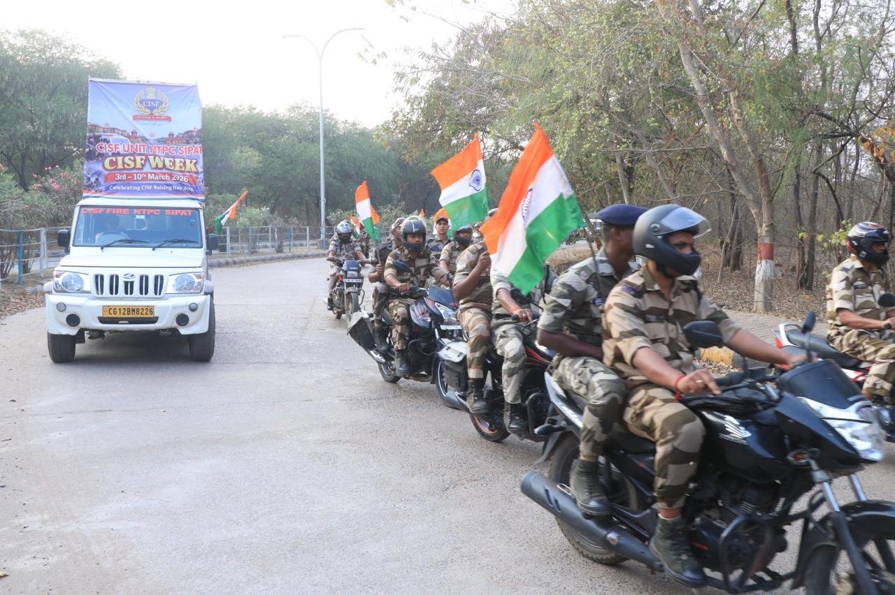 सीपत,,,,,7मार्च को सीआईएसएफ दिवस सप्ताह (03.03.2026 से 10.03.2026) के अंतर्गत सीआईएसएफ यूनिट एनटीपीसी सीपत द्वारा Dy. Commandant कपिल सुधाकर कामडी के नेतृत्व एवं मार्गदर्शन में तिरंगा रैली का आयोजन किया गया।