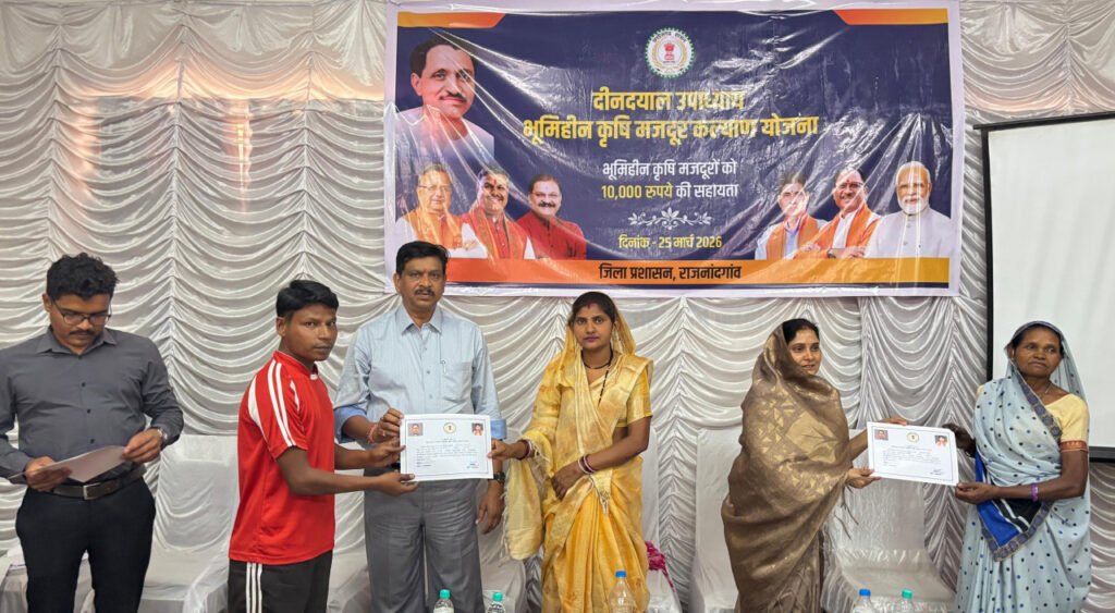 राजनांदगांव : दीनदयाल उपाध्याय भूमिहीन कृषि मजदूर कल्याण योजना – जिले के 15 हजार 565 हितग्राहियों को 15 करोड़ 56 लाख 50 हजार रूपए की राशि हस्तांतरित