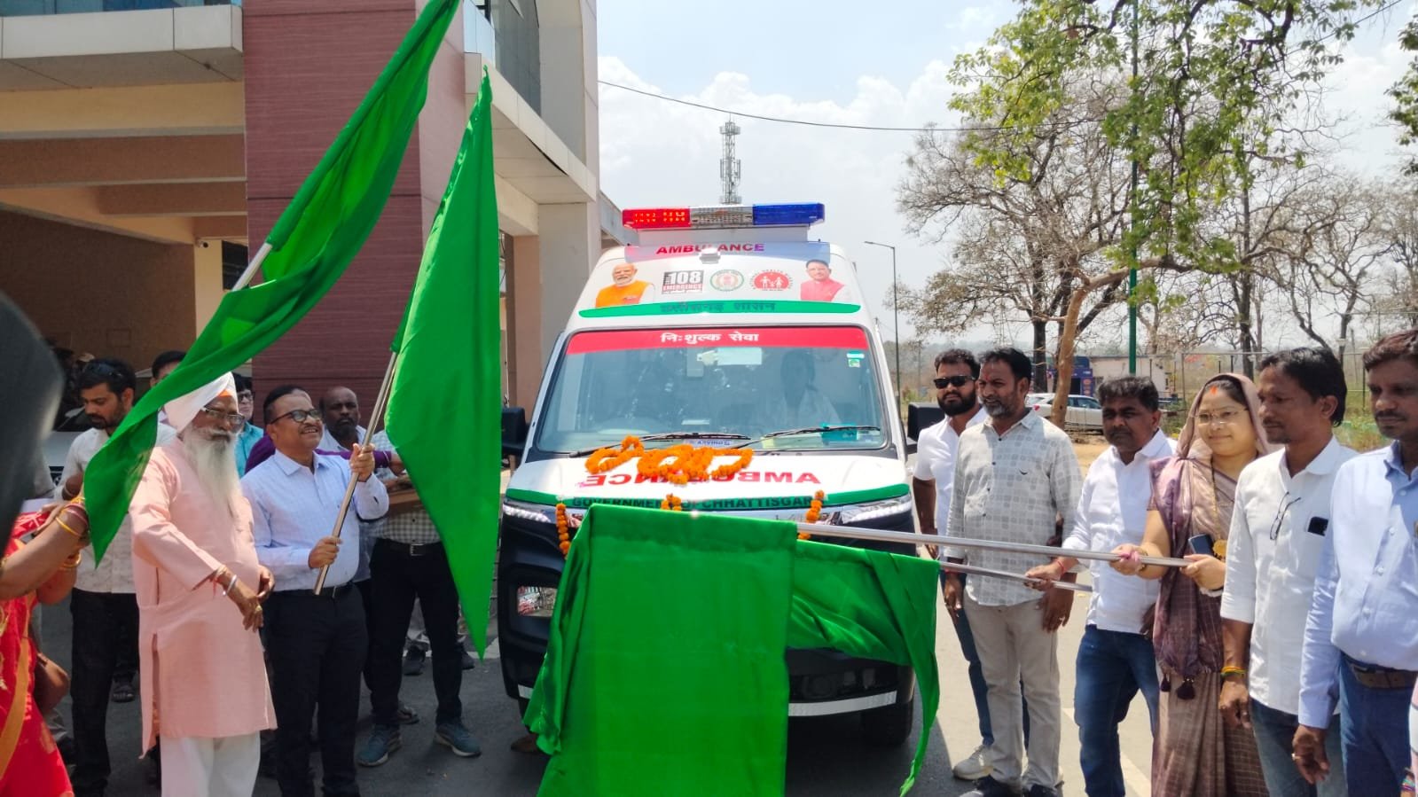 *गरियाबंद*:- जिले में स्वास्थ्य सेवाओं को और अधिक आसान बनाने की दिशा में आज एक महत्वपूर्ण उपलब्धि हासिल की गई। कलेक्टर बी.एस. उइके, जिला पंचायत के उपाध्यक्ष लालिमा ठाकुर, नगरपालिका के अध्यक्ष रिखीराम यादव, वरिष्ठ नागरिक अनिल चंद्राकर, नगरपालिका के उपाध्यक्ष आसिफ मेमन, मुख्य चिकित्सा एवं स्वास्थ्य अधिकारी डॉ. यूएस नवरत्न सहित अन्य जनप्रतिनिधियों और अधिकारियों की उपस्थिति में गरियाबंद जिले को प्राप्त 10 नई 108 संजीवनी एक्सप्रेस एंबुलेंसों का विधिवत पूजा-अर्चना कर हरी झंडी दिखाकर रवाना किया गया।