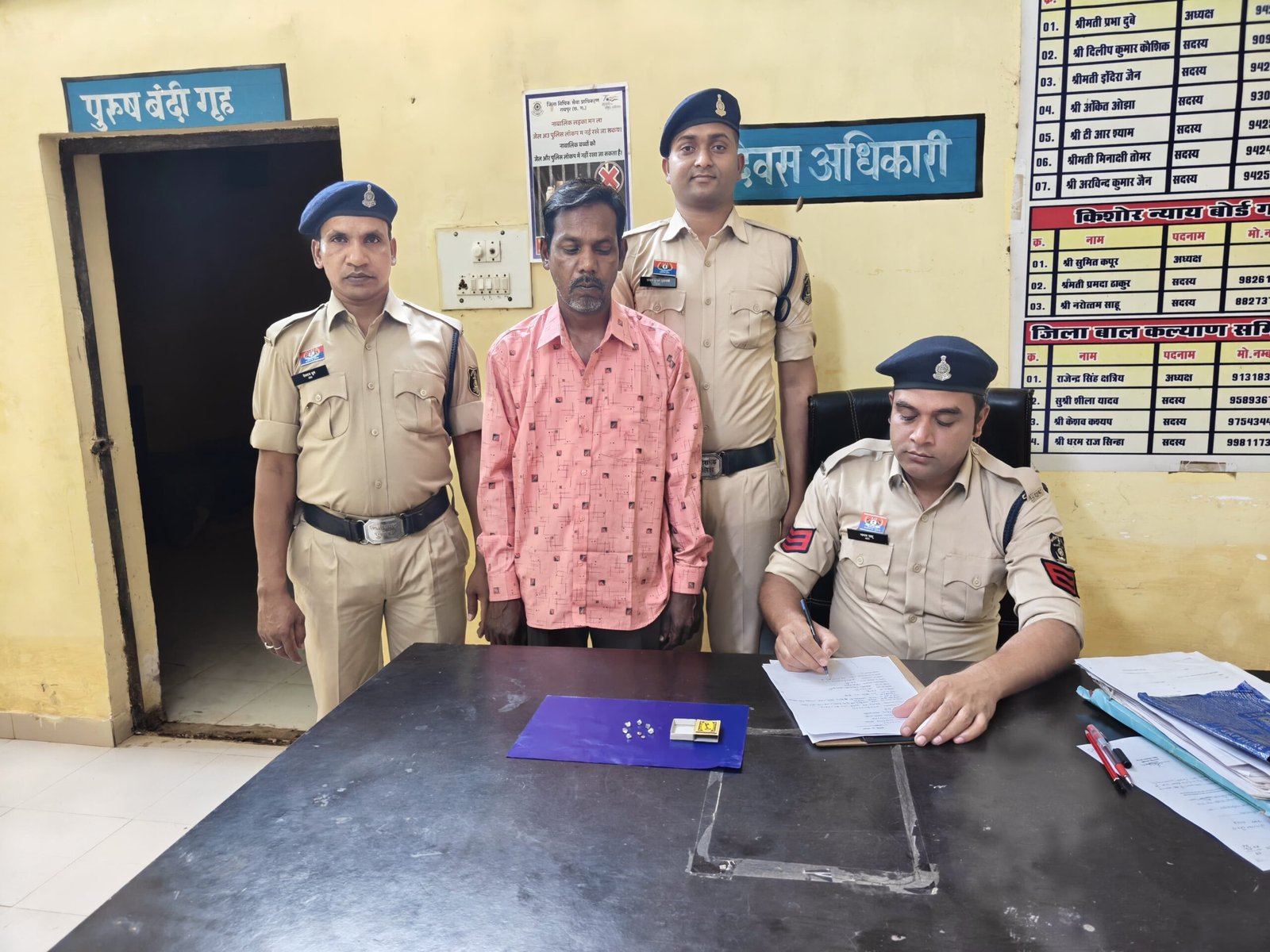 पुलिस स्टाफ, गवाह तथा स्पेशल टीम के साथ मौका पहुच कर घेरा बंदी कर रेड कार्यवाही किया मौके पर आरोपी का नाम पता पूछने पर अपना नाम डमरू लाल लहरे पिता गोविंद राम लहरे उम्र 52 साल निवासी अधिकारिगुड़ा उमरकोट थाना उमरकोट जिला नवरंगपुर उड़ीसा का रहने वाला बताया। जिसके कब्जे से समक्ष गवाहन के कब्जे से 08 नग छोटे बडे चमकीले बहुमुल्य खनिज पदार्थ किमती 04 लाख रूपये एवं घटना में प्रयुक्त मोटर सायकल किमती 50 हजार जुमला किमती 04 लाख 50 हजार रूपयें को समक्ष गवाहन के विधिवत जप्त कर कब्जा पुलिस लिया। आरोपी का कृत्य अपराध धारा 303(2)बीएनएस 21(4) खान एवं खनिज (विकास का विनियमन) अधिनियम 1957 अपराध धारा सदर का पाये जाने से अपराध पंजीबद्ध कर विवेचना में लिया गया।