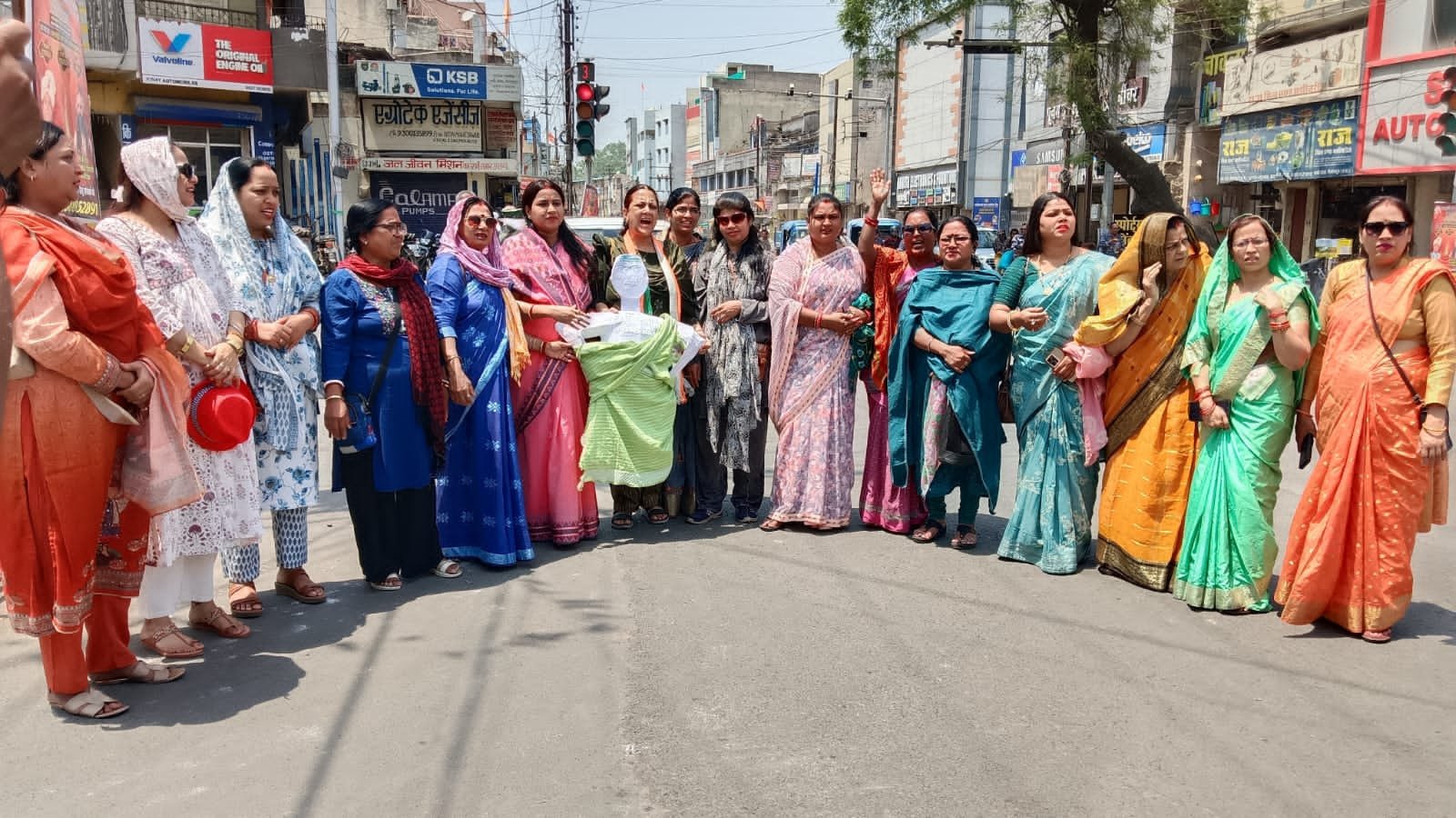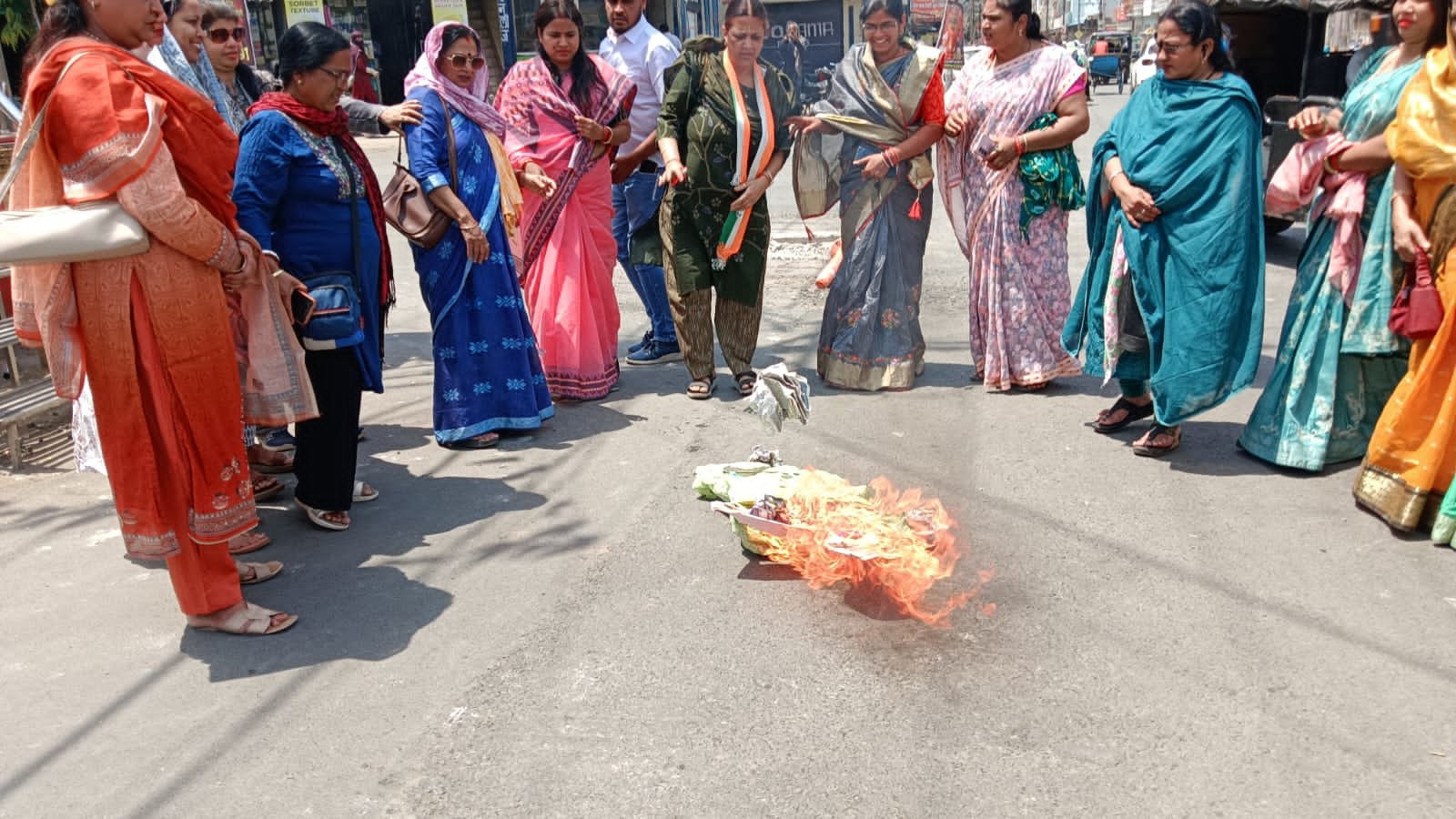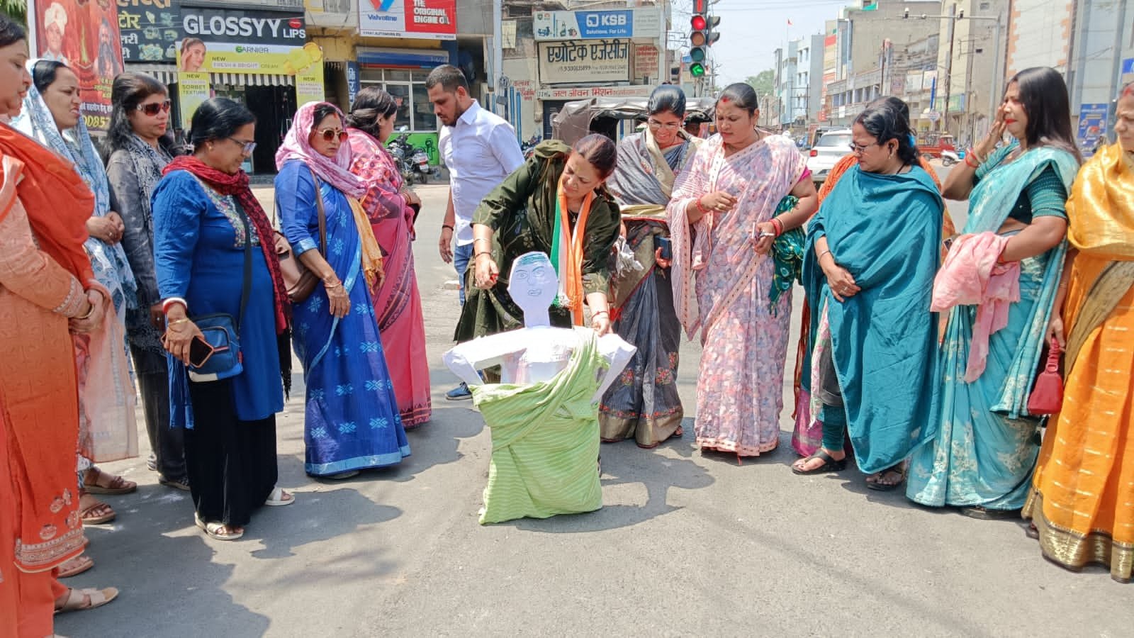 आंगनबाड़ी साड़ी घोटाले के विरोध में महिला कांग्रेस का प्रदर्शन, मंत्री का पुतला दहन