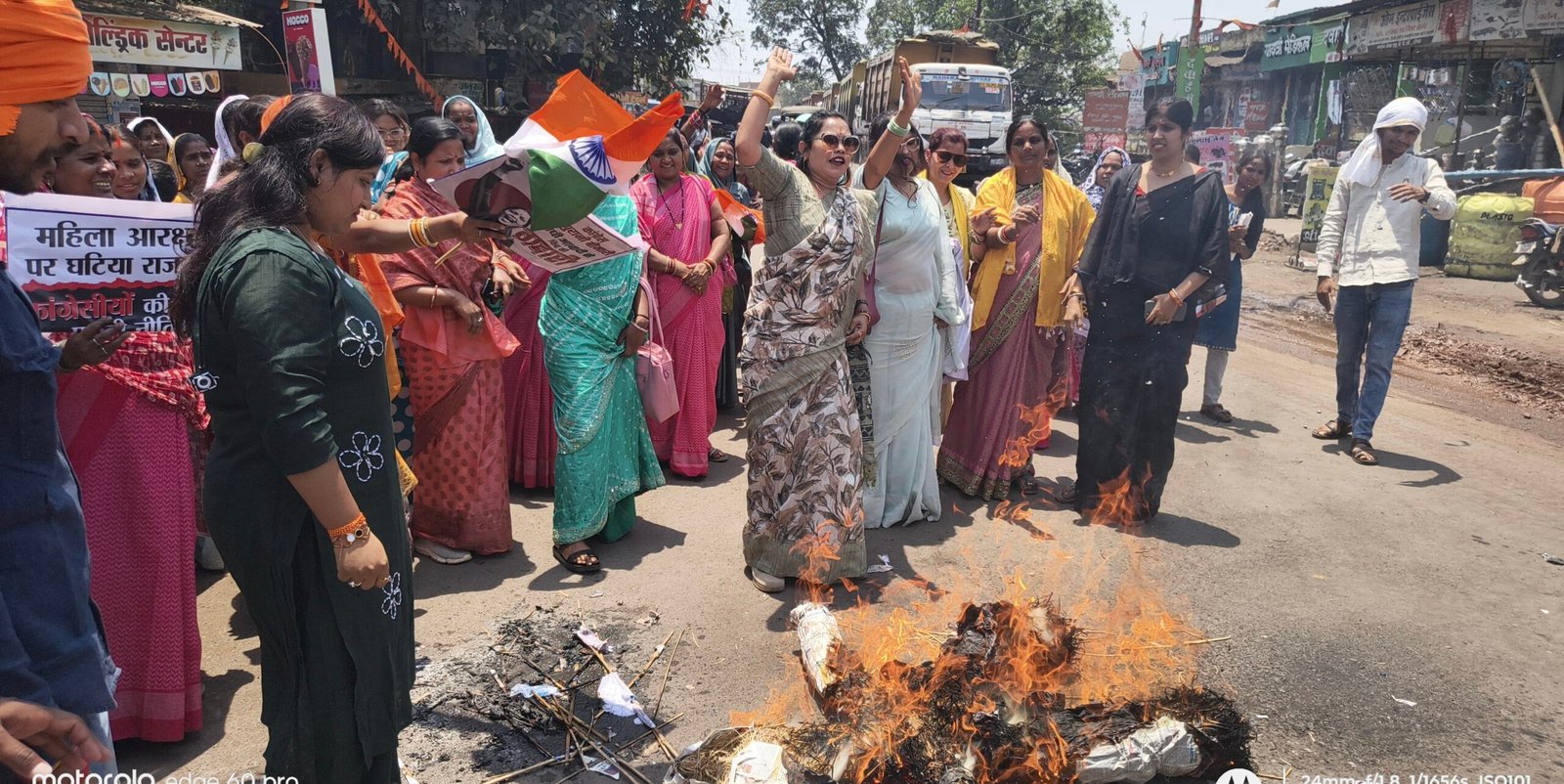महिला आरक्षण बिल की आग सड़क से लेकर संसद तक, सीपत के नवाडीह चौक में कांग्रेस पार्टी का जला पुतला