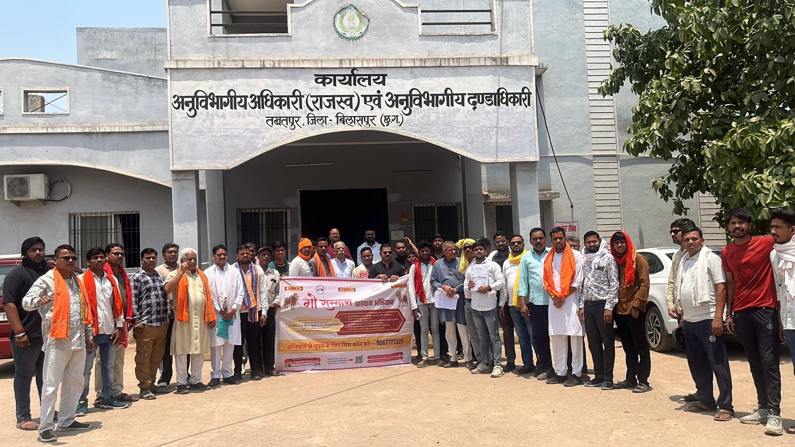 तखतपुर नगर के सर्व हिंदू समाज एसडीएम कार्यालय पहुंचकर बड़ी मात्रा में समाज के प्रमुख जन एवं हिंदू संगठन गौ सेवा टीम के लोग नगर के श्री राम मंदिर से पूजा कर तहसील कार्यालय स्थित एसडीएम ऑफिस में राष्ट्रपति, प्रधानमंत्री मुख्यमंत्री और राज्यपाल महोदय के नाम एसडीएम महोदय को प्रार्थना पत्र सौंपा गया ।
