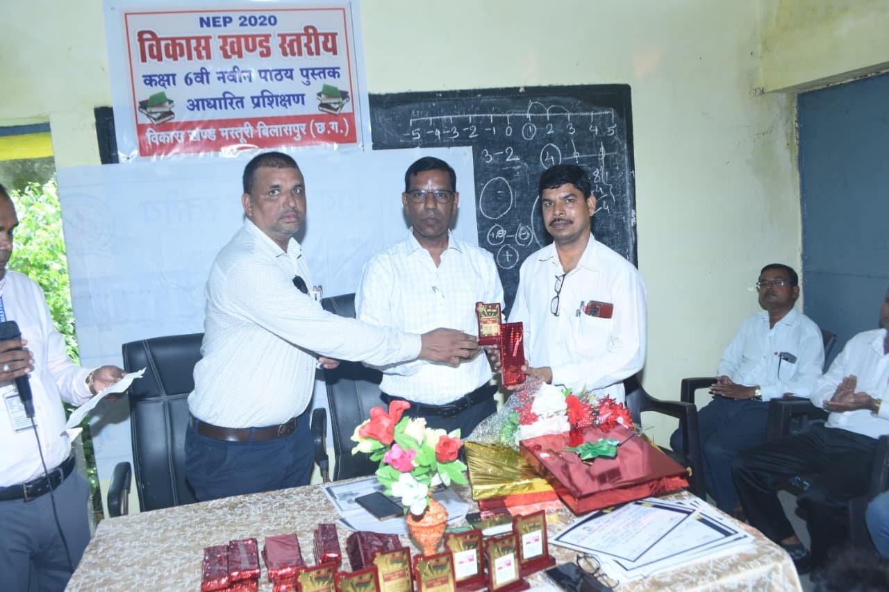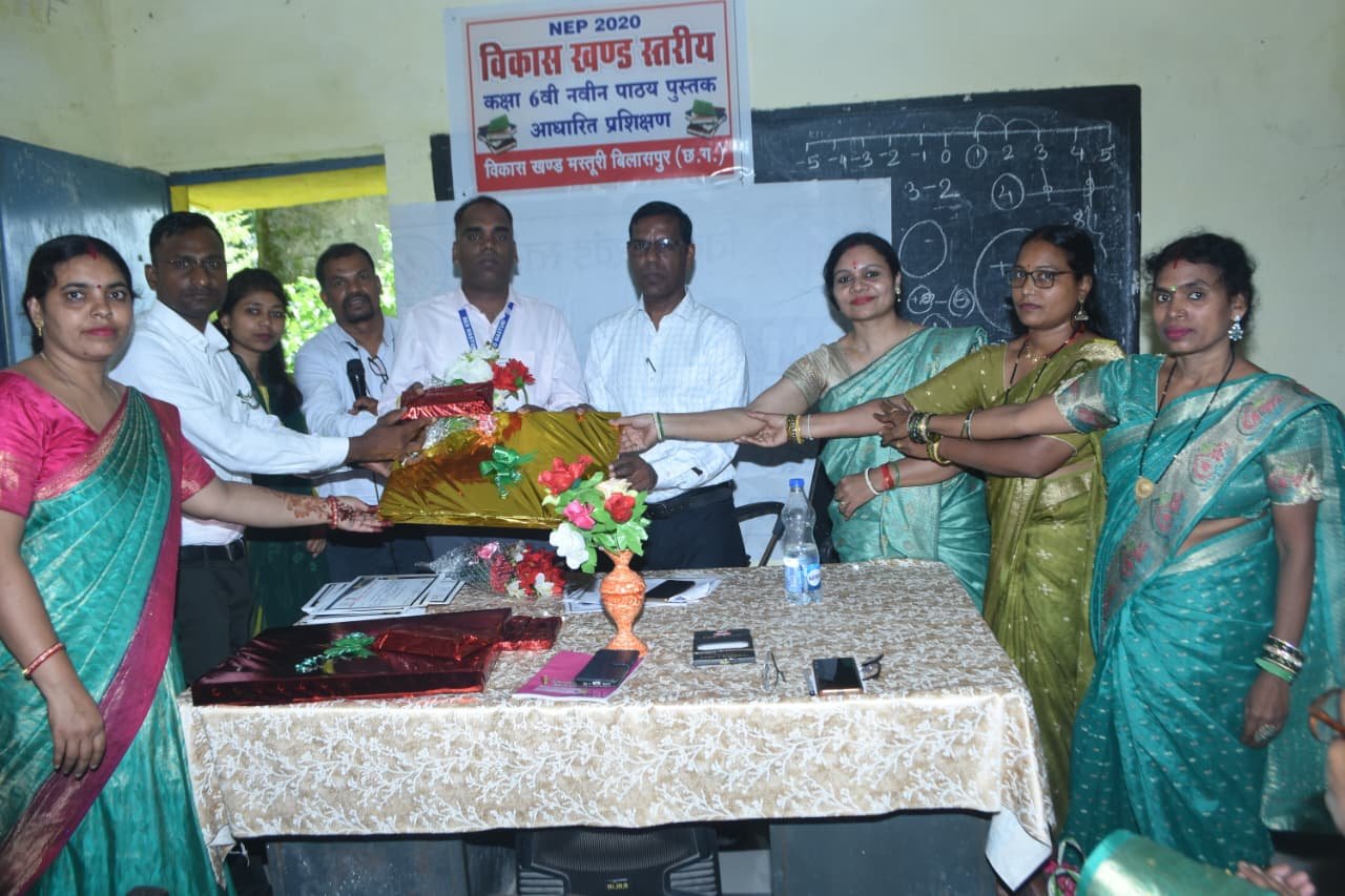 सीपत,,,एस सी ई आर टी रायपुर और डाइट पेंड्रा के आदेशानुसार विकास खंड स्तर पर कक्षा 6वी नवीन पाठ्य पुस्तक आधारित ब्लाक स्तरीय 5दिवसीय प्रशिक्षण मिडिल स्कूल स्तर के हिंदी (मल्हार) विषय पर 36 शिक्षको और गणित(प्रकाश विषय) 53 शिक्षको का लक्ष्य के मान से प्रथम चरण का प्रशिक्षण 5 अगस्त से प्रारम्भ होकर 11 अगस्त तक 5 दिवसीय प्रशिक्षण के समापन दिवस में मार्गदर्शक प्रेरणास्त्रोत के रूप में विकास खंड शिक्षा अधिकारी मस्तूरी शिवराम टंडन का स्त्रोत समूह और प्रशिक्षार्थी शिक्षको के द्वारा बुके देकर स्वागत किया गया|