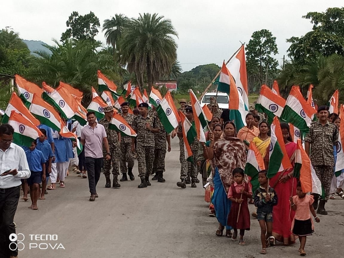 नारायणपुर, :—-स्वतंत्रता दिवस के उपलक्ष्य में “हर घर तिरंगा” अभियान के तहत जिले के विभिन्न थाना क्षेत्रों में पुलिस के नेतृत्व में भव्य तिरंगा रैलियां निकाली जा रही है। कुरुषनार, फरसगांव, एड़का, धनोरा, छोटेडोंगर, ओरछा और धौड़ाई थाना क्षेत्रों में आयोजित इन रैलियों में पुलिस बल, विद्यालयों के छात्र-छात्राएं, शिक्षक, जनप्रतिनिधि, गणमान्य नागरिक और ग्रामीण बड़ी संख्या में शामिल हुए।