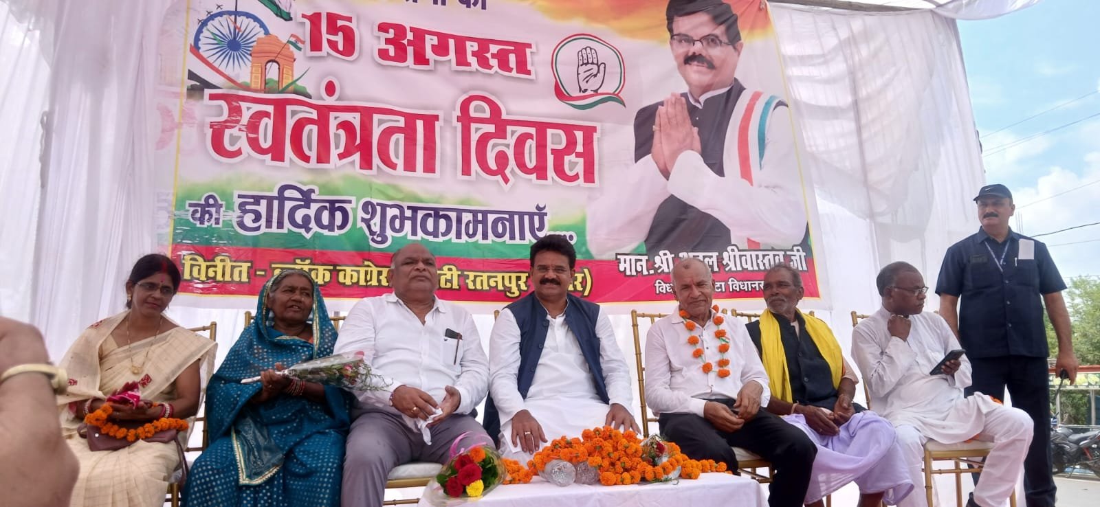 रतनपुर:–;; दक्षिण कौशल की राजधानी, प्राचीन और पौराणिक नगरी रतनपुर में स्वतंत्रता दिवस का पर्व इस बार भी गहरी राष्ट्रभक्ति और उत्साह के साथ मनाया गया। ब्लॉक कांग्रेस कमेटी रतनपुर (नगर) द्वारा महामाया चौक में आयोजित इस समारोह में पूरा चौक तिरंगों, गेंदा फूलों और देशभक्ति गीतों से सजा हुआ था।मुख्य अतिथि, क्षेत्र के यशस्वी विधायक अटल श्रीवास्तव ने जैसे ही तिरंगे को फहराया, पूरा माहौल “भारत माता की जय” और “वंदे मातरम्” के नारों से गूंज उठा। आसमान में उड़ते रंग-बिरंगे गुब्बारे और बच्चों के हाथों में लहराते झंडे ने यह दृश्य अविस्मरणीय बना दिया।कार्यक्रम की अध्यक्षता सुभाष अग्रवाल ने की, जबकि विशिष्ट अतिथि आनंद जायसवाल, मदन कहरा, मिलन सिंह मरावी, रामरतन भारद्वाज, गणेशिया बाई सारथी, शोभा दुबे एवं मिर्जा रसीद बेग मंच पर उपस्थित थे वही इस अवसर पर शीतल जायसवाल (समन्वयक) ,राजा रावत, आशीष शर्मा, गुहा कहरा ,मिलन सिंह मरावी, खुशाल अनुरागी ,कुलदीप दुबे, अजय दुबे, जितेंद्र चंदेल ,शकीर मोहम्मद ,रवि रावत ,कांग्रेस कार्यकर्ताओं की भारी भीड़ और स्थानीय नागरिकों की सहभागिता ने इस आयोजन को और भव्य बना दिया।
