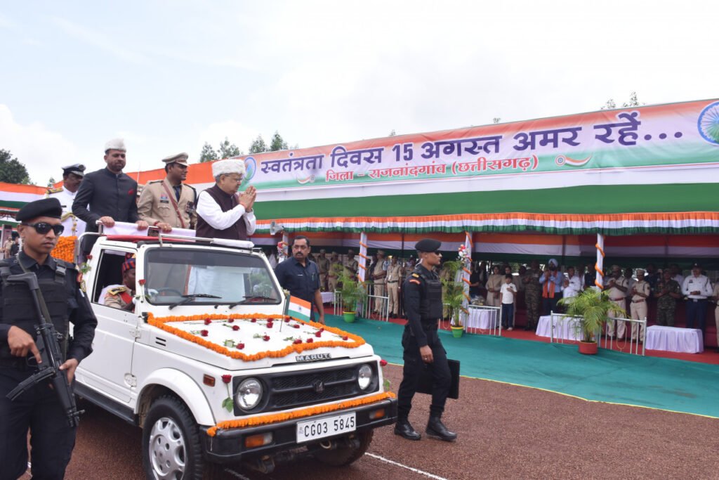राजनांदगांव :—-स्वतंत्रता दिवस के अवसर पर जिला स्तरीय मुख्य समारोह का आयोजन शौर्य परेड मैदान पुलिस प्रशिक्षण विद्यालय राजनांदगांव में आयोजित किया गया। कार्यक्रम के मुख्य अतिथि विधानसभा अध्यक्ष डॉ. रमन सिंह ने ध्वजारोहण कर परेड की सलामी ली। विधानसभा अध्यक्ष ने उद्बोधन दिया। इस दौरान कलेक्टर डॉ. सर्वेश्वर नरेन्द्र भुरे ने मुख्यमंत्री विष्णु देव साय के संदेश का वाचन किया। विधानसभा अध्यक्ष डॉ. रमन सिंह ने उल्लास एवं उमंग के प्रतीक रंगीन गुब्बारे आसमान में छोड़े। मुख्य अतिथि विधानसभा अध्यक्ष डॉ. रमन सिंह ने ध्वजारोहण के बाद समारोह में परेड का निरीक्षण किया। परेड द्वारा हर्ष फायर किया गया। परेड द्वारा तिरंगे को सलामी दी गई। इस अवसर पर विधानसभा अध्यक्ष ने उत्कृष्ट कार्य करने वाले विभिन्न विभागों के अधिकारियों एवं कर्मचारियों को प्रशंसनीय कार्य करने के लिए सम्मानित किया एवं उन्हें शुभकामनाएं दी। उन्होंने शहीद जवानों के परिवारजनों को शाल एवं श्रीफल भेंट कर सम्मानित किया। स्वतंत्रता दिवस समारोह की परेड में आम्र्स प्लाटून के साथ-साथ एनसीसी और स्काउट-गाईड की टुकडिय़ों तथा सांस्कृतिक कार्यक्रमों में विजेता प्रतिभागियों एवं टीम को पुरस्कार वितरण किया। इस अवसर पर कलेक्टर डॉ. सर्वेश्वर नरेन्द्र भुरे, पुलिस अधीक्षक मोहित गर्ग उपस्थित रहे।