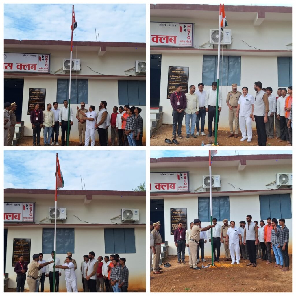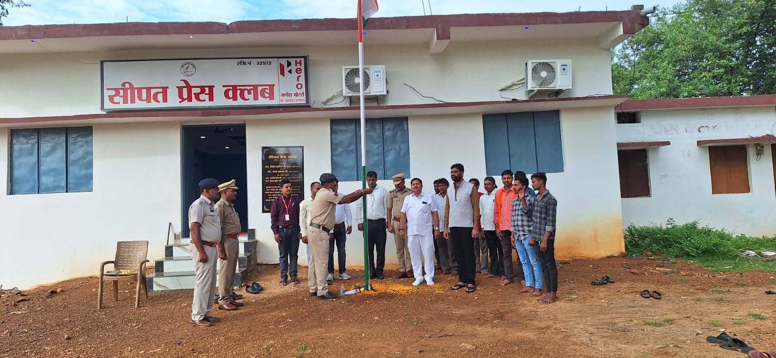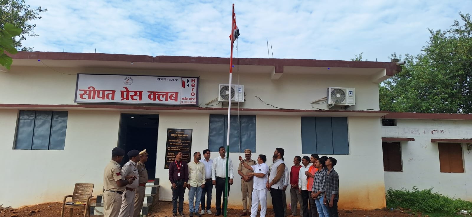 सीपत :— स्वतंत्रता दिवस के अवसर पर सीपत प्रेस क्लब के इतिहास में सुनहरा अध्याय जुड़ गया। नवनिर्मित भवन में पहली बार तिरंगा लहराया गया। प्रेस क्लब अध्यक्ष प्रदीप पांडेय ने तहसीलदार सोनू अग्रवाल और थाना प्रभारी गोपाल सतपथी के साथ संयुक्त रूप से ध्वजारोहण किया।