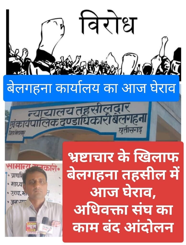 इस स्थिति के खिलाफ अधिवक्ता साथियों और जनप्रतिनिधियों ने आज बेलगहना तहसील का घेराव करने का ऐलान किया है। उनकी प्रमुख मांग है कि—तहसील कार्यालय की कार्यप्रणाली में सुधार हो।भ्रष्ट अधिकारियों और कर्मचारियों पर वास्तविक कार्रवाई की जाए।बिना जांच और दंड के सिर्फ तबादला करने की प्रथा बंद हो।