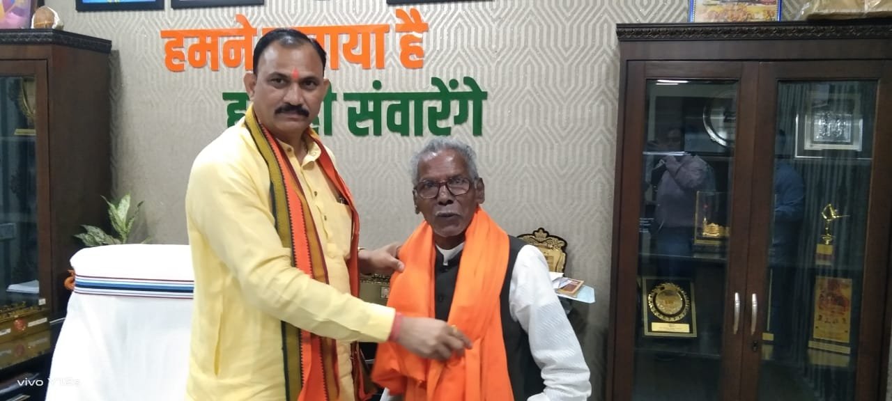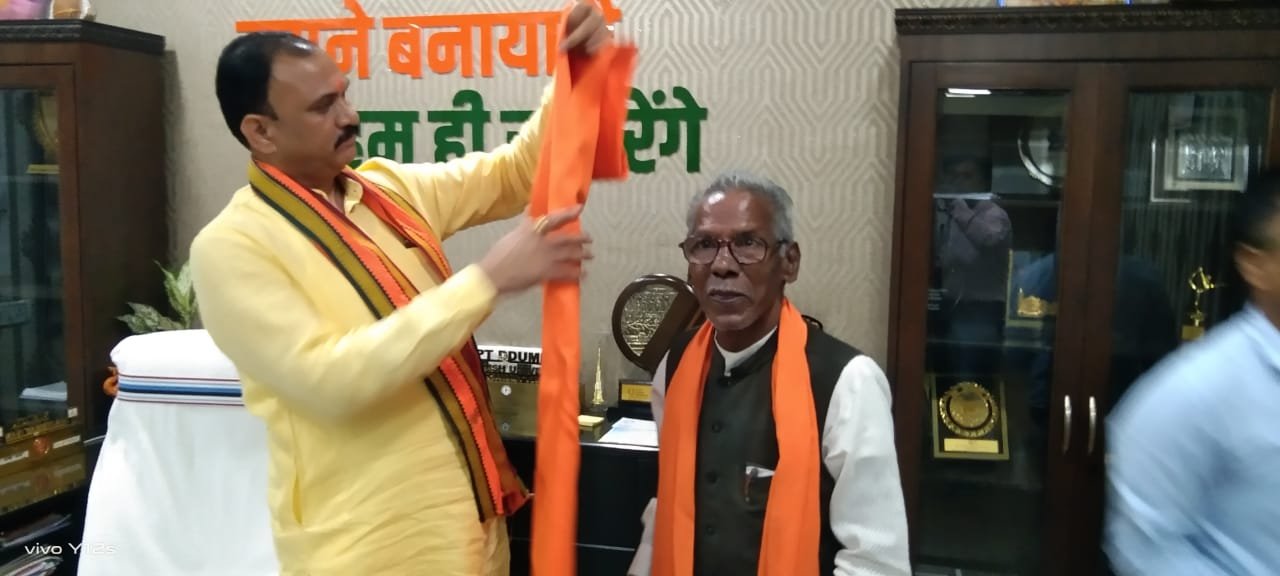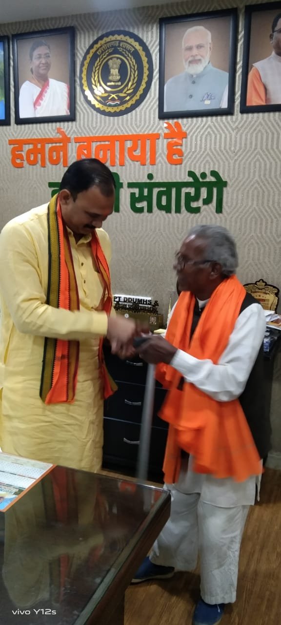 स्वास्थ्य मंत्री ने उन्हें भगवा गमछा भेंट कर उनका कुशल क्षेम पुछा l और क्षेत्र के बारे में उन्होंने उनसे जानकारी ली l