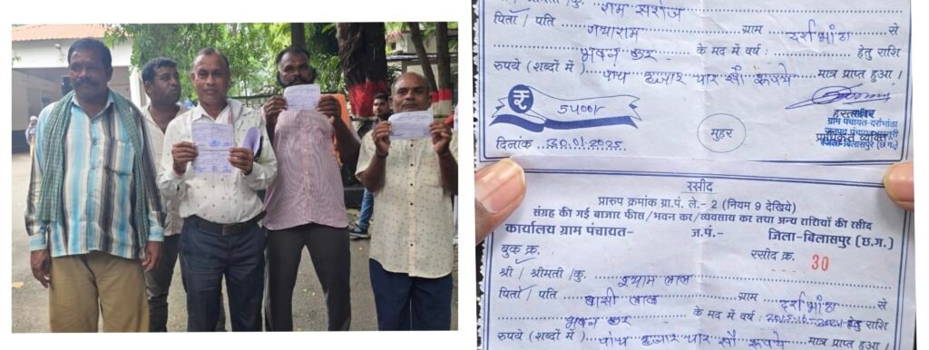 सीपत,,,- जिले के सीपत तहसील अंतर्गत ग्राम पंचायत दर्राभाठा में मकान टैक्स वसूली में गंभीर अनियमितताओं का मामला सामने आया है। ग्रामीणों ने आरोप लगाया है कि पंचायत सचिव, रोजगार सहायक और ऑपरेटर द्वारा उनसे निर्धारित टैक्स से कई गुना अधिक राशि ली गई। इस संबंध में प्रभावित ग्रामीणों ने सामूहिक रूप से कलेक्टर बिलासपुर एवं जनपद अधिकारियों को लिखित शिकायत सौंपकर न्याय की गुहार लगाई है।शिकायतकर्ताओं में अश्विनी कुमार मिरी, जय नारायण भरद्वाज, धनसाय पांडे, रामस्वरूप रात्रे, चंद्रप्रकाश रात्रे, संतोष कुमार, चैतराम रात्रे और विजय कुमार चंद्राकर सहित अन्य ग्रामीण शामिल हैं।