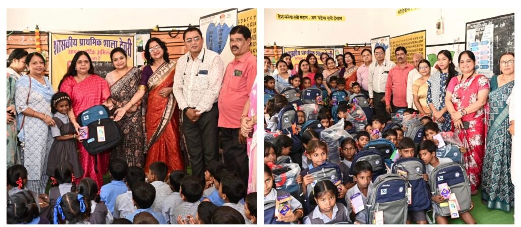 सीपत,,,,एनटीपीसी सीपत की संगवारी महिला समिति द्वारा 19 सितंबर 2025 को ग्राम पंचायत देवरी की शासकीय प्राथमिक शाला में स्कूल बैग का वितरण किया गया। समिति की अध्यक्षा श्रीमती साधना पाण्डेय की अध्यक्षता में आयोजित इस कार्यक्रम में कक्षा-1 से 5वीं तक के करीब 100 छात्र-छात्राओं को स्कूल बैग प्रदान किए गए।
