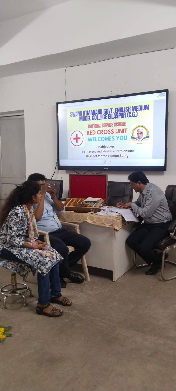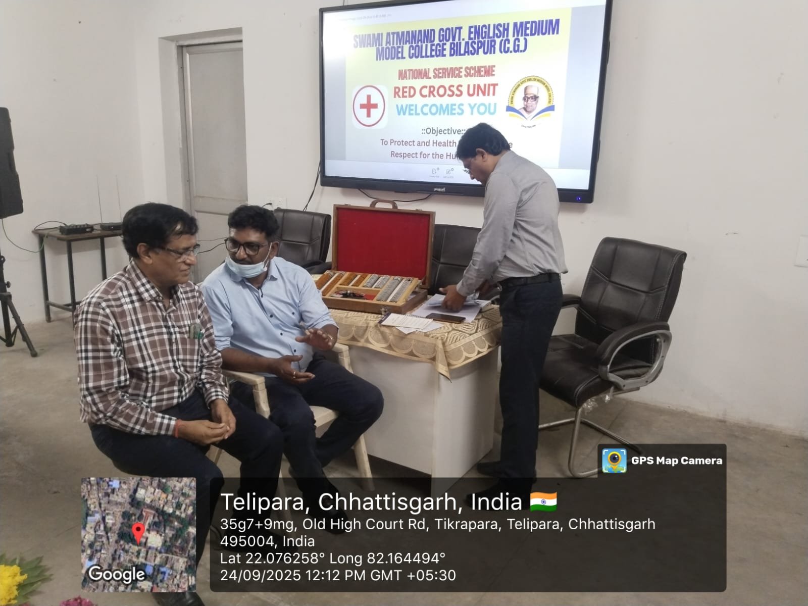 स्वामी आत्मानंद अंग्रेजी माध्यम आदर्श महाविद्यालय, बिलासपुर (छत्तीसगढ़) में राष्ट्रीय सेवा योजना (NSS) के तत्वावधान में “सेवा पखवाड़ा” का आयोजन किया गया, जिसने स्वास्थ्य के प्रति जागरूकता को नई दिशा दी। इस अवसर पर नगर के दो प्रतिष्ठित संस्थानों – संकल्प नेत्रालय और एकता ब्लड बैंक ने महाविद्यालय के साथ मिलकर महत्वपूर्ण भूमिका निभाई।