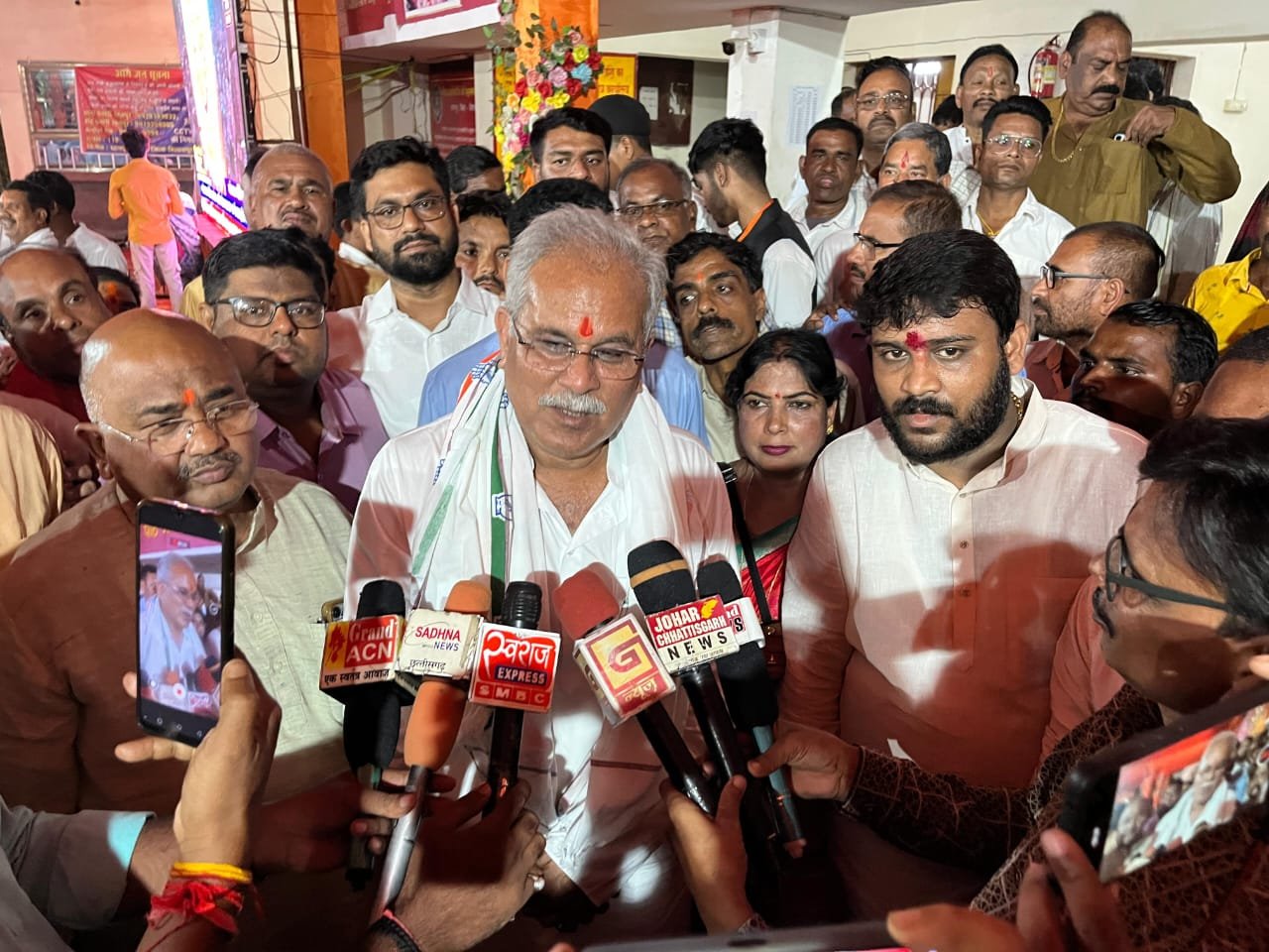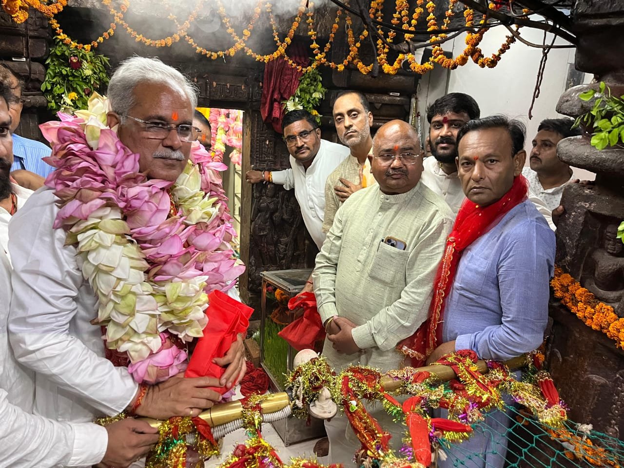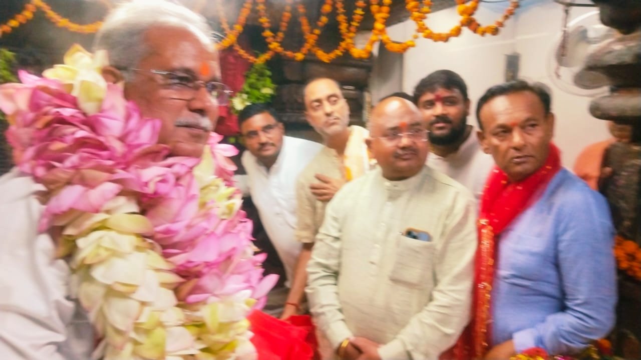 रतनपुर…शारदीय नवरात्रि के चतुर्थ दिवस विश्व प्रसिद्ध सिद्ध शक्तिपीठ माँ महामाया देवी जी के दर्शन हेतु छत्तीसगढ़ राज्य के पूर्व मुख्यमंत्री भूपेश बघेल पहुंचे, जहाँ पर कार्यकर्ताओं ने उनका गर्म जोशी के साथ वीआईपी पार्किंग स्थल पर विधायक, पूर्व विधायक,जिलाध्यक्ष,ब्लॉक अध्यक्ष एवं कार्यकर्ताओं के साथ गर्म जोशी से स्वागत किया । मंदिर प्रांगण में ट्रस्ट अध्यक्ष आशीष सिंह ठाकुर,उपाध्यक्ष सतीश शर्मा एवं मैनेजिंग ट्रस्टी अरुण शर्मा एवं सदस्यों ने स्वागत किया