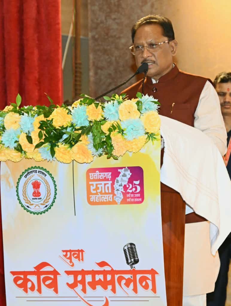 रायपुर :—- छत्तीसगढ़ की साहित्यिक, सांस्कृतिक और कलात्मक परंपराओं को नई ऊर्जा देने के उद्देश्य से विगत रात्रि आयोजित राज्य स्तरीय युवा कवि सम्मेलन में मुख्यमंत्री विष्णु देव साय ने प्रभु श्रीराम के ननिहाल और माता शबरी की पावन भूमि को नमन करते हुए कहा कि छत्तीसगढ़ की धरती सदा से साहित्य और संस्कृति की धरा रही है।