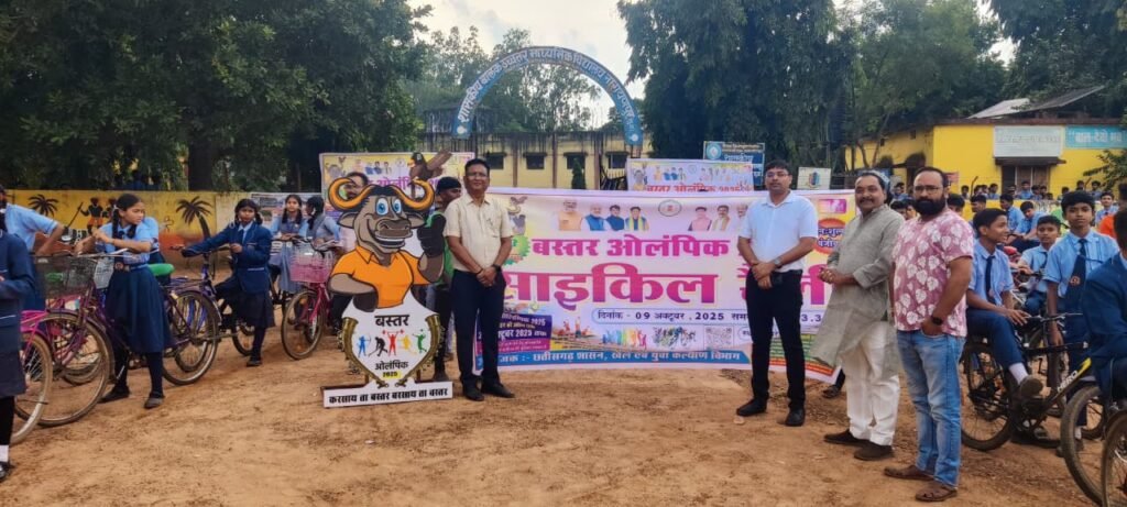 बस्तर ओलपिक 2025 के आयोजन में आम लोगों एवं खिलाडियों को सहभागिता हेतु प्रेरित करने के लिए सायकिल रैली का आयोजन 09 अक्टूबर दिन गुरूवार अपरान्ह 3.30 बजे परेड ग्राउंड बालक उच्चतर माध्यमिक विद्यालय नारायणपुर से किया गया, जो कि शहर के विभिन्न मार्गों से होते हुए पुनः प्रारंभिक स्थल पर समाप्त हुई, जिसमे नगरवासी, जनप्रतिनिधि, अधिकारी कर्मचारी, स्कूल, कॉलेज, छात्रावासों के छात्र छात्राए, खिलाड़ी, खेल संघों के पदाधिकारी उपस्थिति रहे।