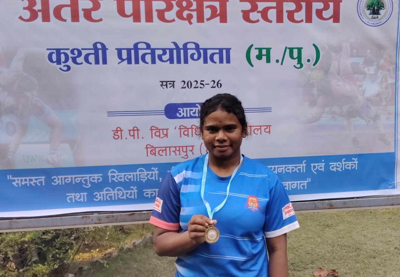 जिसमे ओमकारा स्पोर्ट्स क्लब खेलगॉव की खिलाडी साधना श्याम जो की शासकीय महामाया महाविद्यालय रतनपुर मे बी ए प्रथम सेमेस्टर की छात्रा है साधना ने अपनी पहले मुकाबले मे बिलासा महाविद्यालय बिलासपुर की पहलवान को बाई फाल चित कर कुश्ती जीती अपनी दूसरी मुकाबले मे शासकीय जमुना प्रसाद वर्मा महाविद्यालय की खिलाडी को भी अच्छा स्किल का प्रदर्शन कर बाई फाल चित कर -62 किलोग्राम वजन वर्ग की कुश्ती का गोल्ड मेडल जीतकर आल इंडिया इंटर यूनिवर्सिटी कुश्ती प्रतियोगिता के लिए अटल विहारी वाजपेयी विश्वविद्यालय बिलासपुर की कुश्ती टीम मे चयनित भी हुवी है साधना पानी टंकी खेल मैदान कुश्ती अखाडा मे अभ्यास करती है