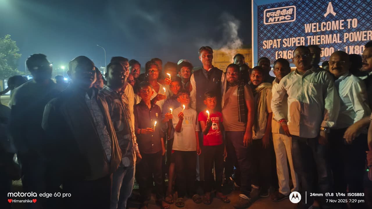 सीपत,,,,,7 नवंबर को एनटीपीसी के 51वें स्थापना दिवस पर जहां एनटीपीसी सीपत सयंत्र परिसर में रोशनी से जगमगा और खुशियां मनाया जा रहा था वहीं बाहर के गांवों में अंधेरे, उपेक्षा और असंतोष का माहौल नजर आई । क्षेत्र के लोगों ने नवाडीह चौक से एनटीपीसी मटेरियल गेट कैंडल मार्च निकाल कर एनटीपीसी सीपत के खिलाफ अपना शांतिपूर्ण तरीके से विरोध प्रदर्शन किया l क्षेत्र के लोगों ने कहा कि एनटीपीसी की चमक सिर्फ उसकी कॉलोनी की दीवारों के भीतर है, बाहर सीपत और आसपास के गांवों में सिर्फ राख, टूटी सड़कें और बेरोजगारी की धूल उड़ रही है। एनटीपीसी सीपत प्रबंधन पर आरोपलगाते हुए कहा कि एनटीपीसी ने विकास के नाम पर सिर्फ दिखावा किया है, जबकि असली विकास प्रभावित गांवों तक कभी पहुँचा ही नहीं। सीपत, जांजी, कौड़िया ,रॉक,देवरी, रलिया, कर्रा गतौरा के सहित क्षेत्र भी मूलभूत सुविधाओं से ग्राम वंचित हैं।