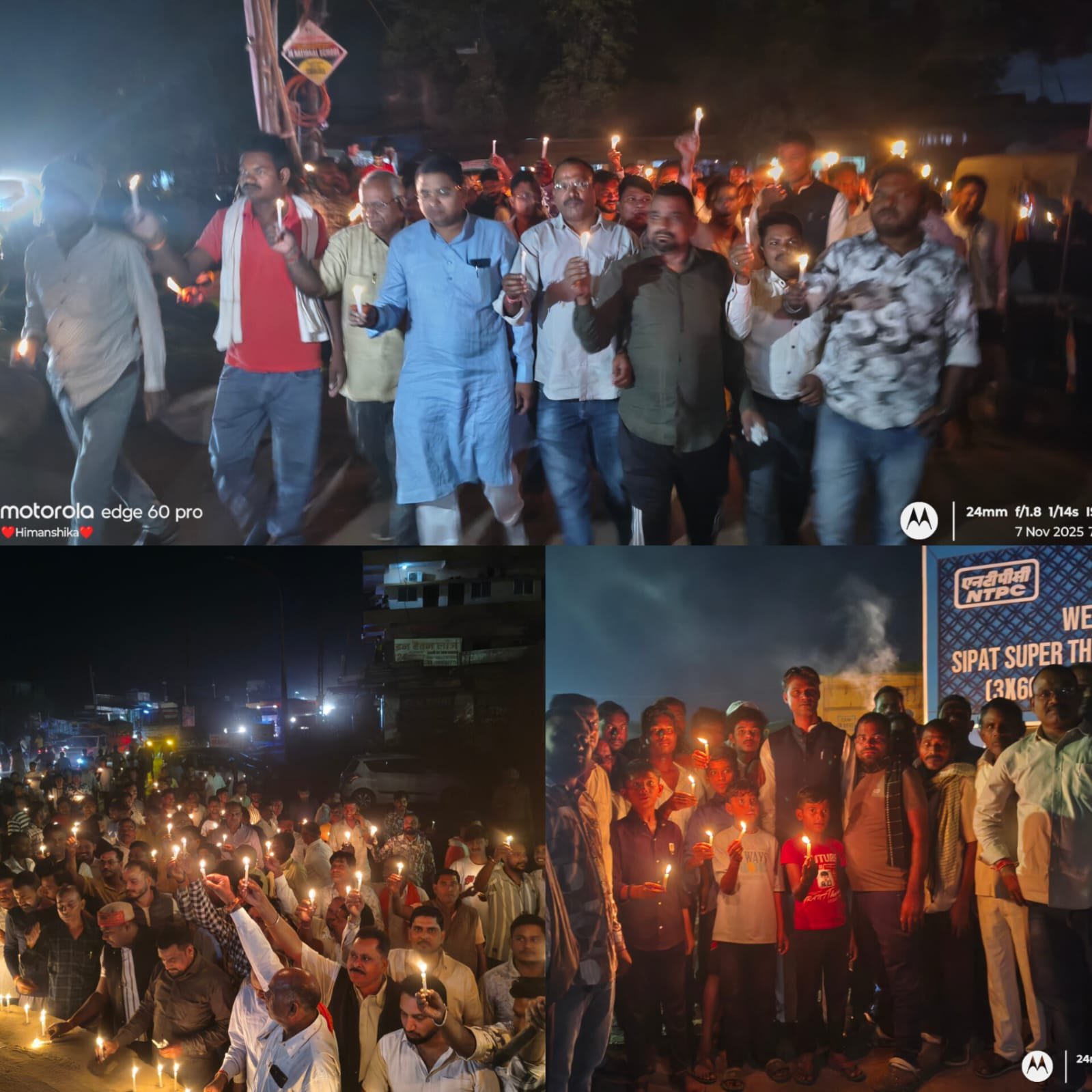 कैंडल मार्च निकाल कर किया विरोध, जनप्रतिनिधियों ने कहा एनटीपीसी सीपत से बुनियादी सुविधाओं की आस,,,तभी बनेगी बात