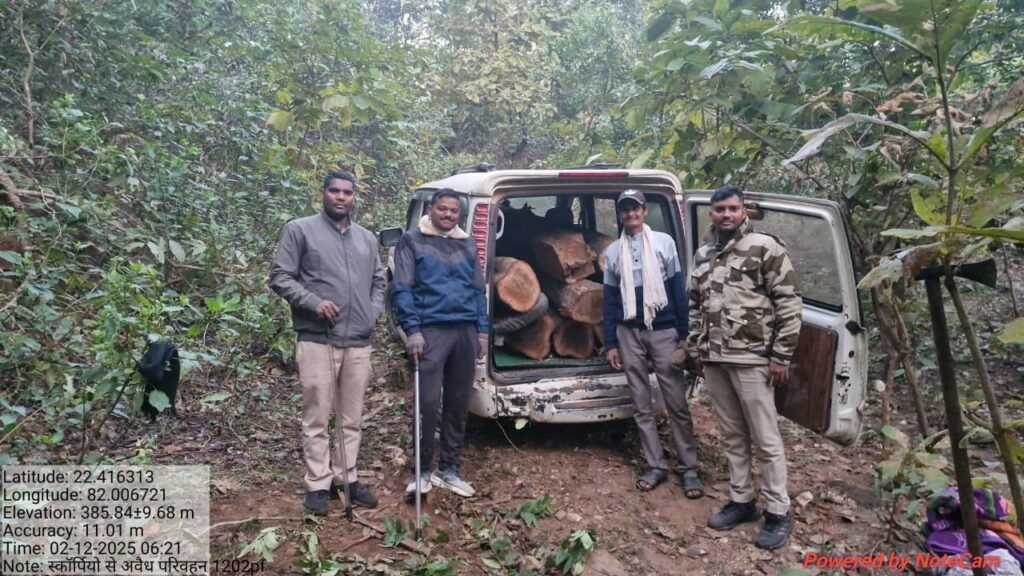 बेलगहना:—-वन परिक्षेत्र बेलगहना के अंतर्गत वन विभाग की टीम के द्वारा आज रात्रि मंगलवार 2 दिसंबर को अज्ञात व्यक्ति के द्वारा एक स्कॉर्पियो वाहन क्रमांक सीजी 19C6590 में सागौन प्रजाति के इमारती लट्ठा 6 नग एवं एक नग सागौन सिलपट को अवैध तरीके से कटाई एवं लोड करके परिवहन करने की सूचना मुखबिर द्वारा मिलने पर तत्काल वन विभाग की टीम मौके पर पहुंची और संदिग्ध वाहन की कक्ष क्रमांक 1202pf वनदेवी मंदिर करही कछार मुख्य मार्ग से पीछा करते हुए बेलगहना की ओर दौड़ने पर करही कछार फाटक पारा होते डोंगरी पारा होते जूना पानी पहाड़ी में लोड लकड़ी सहित वाहन को छोड़कर वाहन मालिक एवं चालक फरार है जप्त वाहन के रजिस्ट्रेशन के आधार पर जप्ति कार्रवाई करते हुए पी ओ आर काटकर प्रकरण दर्ज किये जा रहे है इस कार्रवाई में परिक्षेत्र सहायक बेलगहना डिप्टी रेंजर शिव कुमार पैकरा वनरक्षक संतकुमार वाकर एवं पंकज साहू वाहन चालक संतोष श्रीवास चौकीदार ओम प्रकाश पांडे रामफल गोंड देवलाल पाव के विशेष योगदान रहा