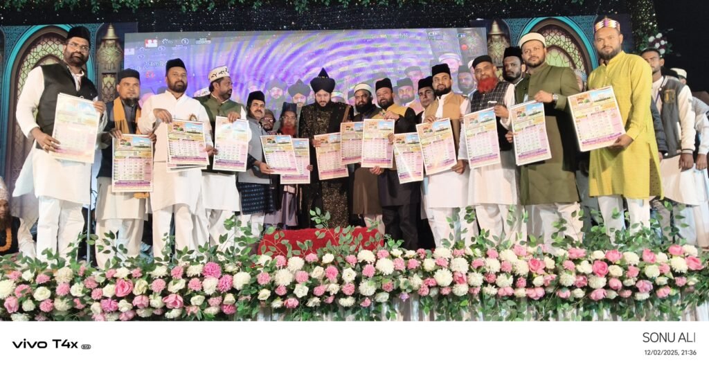 सीपत,,,,,कोरबा के घण्टाघर में आयोजित मरकज़ी सीरत कमेटी के सीरतुन्नबी जलसे के मुख्य मंच से मुस्लिम समाज के प्रतिष्ठित और प्रसिद्ध आलिम-ए-दीन धर्मगुरु मुफ़्ती सलमान अज़हरी साहब ने दरगाह लुतरा शरीफ से प्रकाशित फैज़ाने बाबा सैय्यद इंसान अली शाह कैलेंडर 2026 का बड़े ही शानो शौकत के साथ आध्यात्मिक माहौल में विमोचन किया।