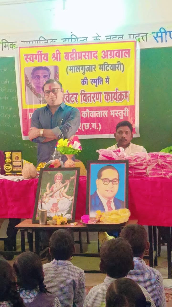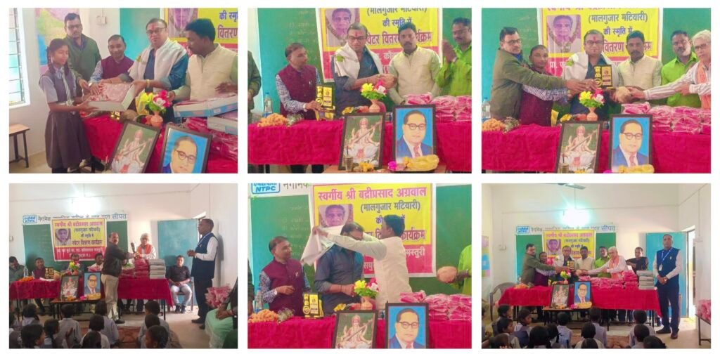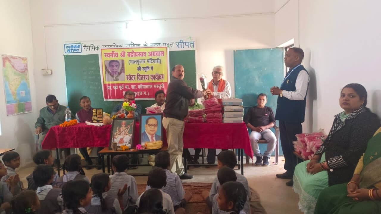 शासकीय पूर्व मा शा कौवाताल में स्व बद्री प्रसाद अग्रवाल (मालगुजार मटियारी)की स्मृति में मटियारी निवासी सुपुत्र द्वय अवधेश अग्रवाल जनपद सदस्य बिल्हा और राजेश अग्रवाल एस एस पी सरगुजा के द्वारा स्मृति शेष स्वरूप कड़कड़ाती ठंड से बचाने के उद्देश्यों से गर्म कपड़े के रूप में सभी 110 बच्चो को स्वेटर का वितरण कार्यक्रम रखा गया|