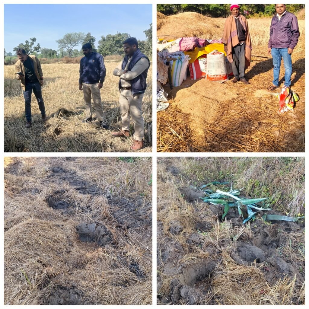 पोड़ी के किसान भागवत धीवर की कटी फसल को काफी नुकसान पहुंचाया है l हाथी की नजदीकी आहट पाकर जिससे वनकर्मी घने जंगल से तुरंत बाहर आ गए।